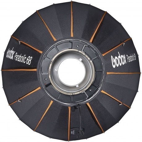Параболический рефлектор Godox Parabolic P68Kit – большая светомодифицирующая насадка диаметром 700 мм. Конструкция из 24 эластичных спиц делает модификатор по форме близким к круглому источнику. Рефлектор имеет серебристую внутреннюю поверхность с высокой отражающей способностью, помогает создавать превосходное освещение с настраиваемым углом светового потока.