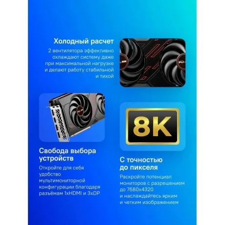 Видеокарта Sapphire AMD Radeon RX 7600 XT PULSE OC на базе архитектуры AMD RDNA 3, оснащенная 32 мощными улучшенными вычислительными блоками, кэш-памятью AMD Infinity Cache и выделенной памятью GDDR6 объемом 8 ГБ, обеспечивает сверхвысокую частоту кадров и великолепные ощущения при игре с разрешением 7680?4320.