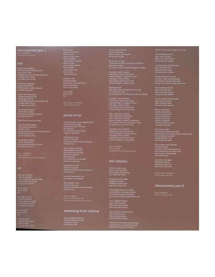 Лицензионное издание, выпущенное на виниле. Содержание альбома: Disconnected Part 1, One, So, Pieces Of Me, Something From Nothing, Still Remains, Disconnected Part 2, Someone/ Everything (One Demo), Its Over (Shutdown Demo), Under The Milky Way (The Church Cover)