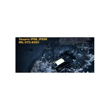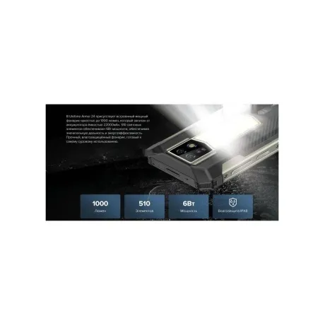 В Ulefone Armor 24 присутствует встроенный мощный фонарик яркостью до 1000 люмен, который запитан от аккумулятора ёмкостью 22000 мАч. 510 световых элементов обеспечивают 6Вт мощности, обеспечивая значительную дальность и энергоэффективность. Прочный, влагозащищённый фонарик, готовый к самому суровому использованию. 3 режима освещения, 3 уровня яркости для различных ситуаций. Регулируйте длительность работы от 10 до 30 минут через бегунок. Защита от перегрузки обеспечивает безопасность устройства. Смартфон работает в качестве повербанка для любых других совместимых электронных устройств. Вы всегда сможете выручить товарища, если у него разрядился телефон, сможете подзарядить наушники. Большая ёмкость аккумулятора позволяет использовать смартфон в качестве резервного источника питания. Ulefone Armor 24 обладает стандартом защиты IP68, IP69K и MIL-STD-810H. Он защищён от влаги, пыли, ударов, падений и экстремальных температур. Отличное решение для индустрии строительства, промышленности, транспорта и любителей активного отдыха. Превосходная долговечность и производительность. Функциональность и производительность Ulefone Armor 24 подтверждена многочисленными испытаниями в самых суровых условиях.