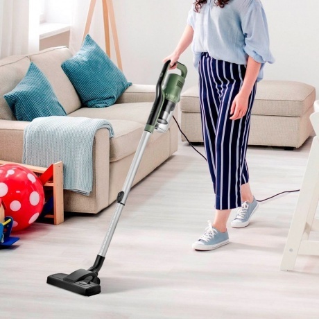 Вертикальный пылесос Kitfort КТ-5237 – устройство для локальной и генеральной уборки. Он всегда под рукой и легко трансформируется в ручной пылесос. Утомительная уборка станет увлекательным занятием, а время уборки сократится вдвое. 2 в 1: вертикальный и ручной пылесос. Конструкция вертикального пылесоса КТ-5237 предусматривает наличие ручного пылесоса, который удобно использовать отдельно. Ручным пылесосом можно пропылесосить углы и плинтусы, обивку мебели, книжные полки, шкафчики на кухне или в гостиной. Управление в одно нажатие. Кнопка «Вкл/Выкл» включает и выключает пылесос. Одно из главных достоинств вертикального пылесоса — его компактность. КТ-5237 хорошо подходит для оперативной уборки, например, рассыпанных крошек или песка от обуви в коридоре. Телескопическая удлинительная трубка. Вертикальный пылесос с напольной щёткой легко регулируется под любую длину. Зажмите кнопку-фиксатор на удлинительной трубке, чтобы раздвинуть или сложить телескопическую трубку. Вертикальный пылесос Kitfort КТ-5237 - фото 6 Напольная щётка «2 в 1» Напольная щётка используется для чистки полов и ковровых покрытий. На корпусе щётки установлен переключатель уборки гладких или ковровых напольных покрытий. Удобное расположение кнопки позволит вам без труда переключить режим нажатием ноги. Вертикальный пылесос Kitfort КТ-5237 - фото 7 Уборка в самых неожиданных местах Узкая насадка в сборке с телескопической трубкой позволят вам достать до всех частей помещения даже там, где вы не дотягиваетесь. Паутина под потолком больше не будет проблемой! Вертикальный пылесос Kitfort КТ-5237 - фото 8 Ручной модуль для любых целей При отсоединении удлинительной трубки КТ-5237 превращается в ручной пылесос. С помощью щелевой насадки и ворсовой насадки “2 в 1” удобно пылесосить углы, плинтусы, обивку мебели, пыль со шкафов, клавиатуру, салон авто и другие труднодоступные места. Вертикальный пылесос Kitfort КТ-5237 - фото 9 Многоуровневая фильтрация Пылесос оборудован современным циклонным фильтром, обеспечивающим качественную очистку. Внутри пылесборника находится фильтр тонкой и грубой очистки с металлической сеткой, которые также легко можно вынуть и почистить. Съёмный моющийся пылесборник. Контейнер пылесборника легко снимается и быстро моется. В пылесосе установлен фильтр тонкой очистки, который задерживает частички пыли. Фильтр можно снять и промыть водой. Кронштейн для настенного хранения. Пылесос занимает мало места при хранении и может легко вписаться в узкий коридор или комнату, заполонённую различными предметами. В комплекте к пылесосу идёт кронштейн для хранения прибора и насадок. Идеальный выбор для компактного хранения! Длинный провод. Благодаря работе напрямую от сети, вам не придётся беспокоиться об оставшемся заряде аккумулятора. Длина провода составляет 5 м, что позволит пропылесосить любой уголок вашего помещения.