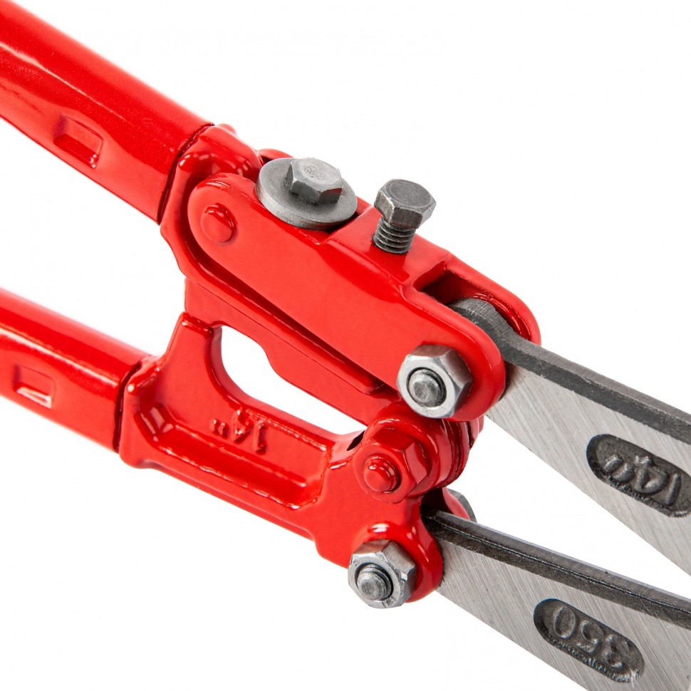Болторез 350 мм - это специальный ручной инструмент, предназначенный для перекусывания болтов, арматуры, стержней, проволоки и пр. Двойной рычажный механизм значительно облегчает резку. Инструмент прочен и надежен в использовании. Он изготовлен из качественной стали, его губки закалены до твердости 58–60 HRc.