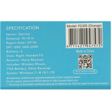 Описание товара Мышь A4Tech Fstyler FG30S Grey-Orange