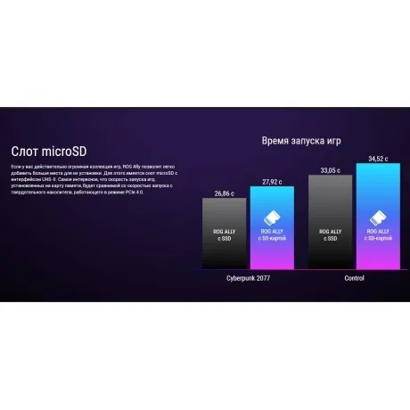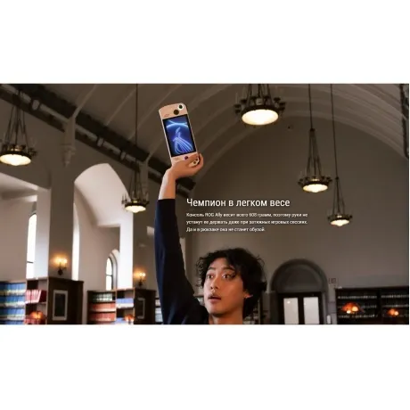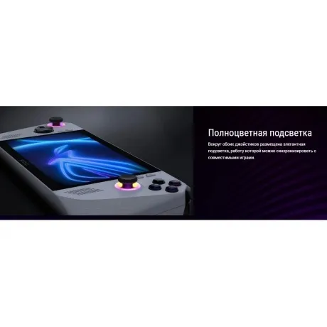 Портативная игровая консоль ASUS ROG Ally выполнена в эргономичном корпусе с удобным доступом к кнопкам управления. Она оснащена сенсорным FullHD экраном диагональю 7 дюймов с технологией FreeSync Premium и частотой обновления 120 Гц, что позволяет воспроизводить детализированную и плавную графику. Высокая производительность системы при запуске игр обеспечивается благодаря процессору AMD Ryzen Z1 Extreme с частотой 5100 МГц и 16 Гб оперативной памяти. Для создания коллекции игр предусмотрено 512 Гб памяти. Система охлаждения Zero Gravity с двумя вентиляторами поддерживает низкую температуру нагрева и работает тихо. Два динамика с интеллектуальным усилителем формируют насыщенное звучание. Для беспроводной синхронизации с устройствами есть технологии Wi-Fi и Bluetooth. Приложение ROG Armoury Crate SE позволяет получать доступ к играм и настройкам консоли. Подсветка Aura Sync с настраиваемой палитрой оттенков помогает погрузиться в игровой процесс с консолью ASUS ROG Ally.