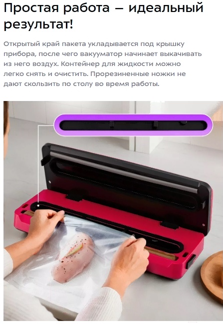 вакуумирование контейнеров, влажные/мягкие продукты, запечатывание, твердые продукты
