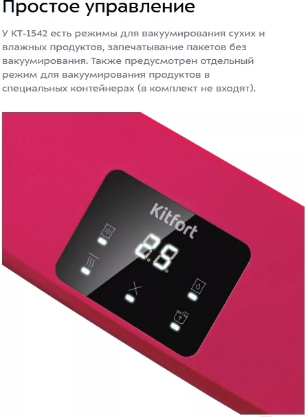 Описание товара Вакуумный упаковщик Kitfort КТ-1542