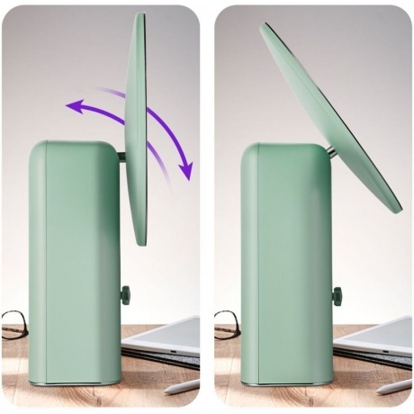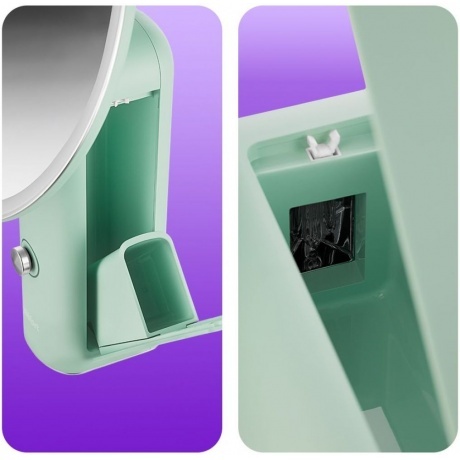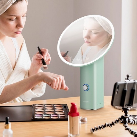 С косметическим зеркалом KT-3170 нанесение макияжа и проведение косметических процедур станет удобнее. Зеркало устанавливается на стол. Благодаря этому ваши руки останутся свободными, вам удобнее будет наносить макияж. Контурная подсветка зеркала поможет лучше разглядеть все мелкие детали даже в условиях недостаточного освещения в помещении. У подсветки есть 5 сценариев (режимов): в ресторане, дома, естественное освещение, для фото и на вечеринке. Сценарии подсветки переключаются при помощи сенсорных кнопок на поверхности зеркала и отличаются цветовой температурой. Яркость подсветки можно настроить при помощи регулятора. Можно отрегулировать угол наклона зеркальной поверхности. Для устойчивости у зеркала на ножке есть присоска. В ножке зеркала есть специальный отсек для обеззараживания кистей и косметологических инструментов. Нажмите на верхнюю часть отсека, чтобы открыть его. В открывающейся части установлен съёмный контейнер для инструментов. Внутри отсека находится УФ-лампа. В КТ-3170 применяется ультрафиолетовая лампа с длиной волны UV-С. UV-C лампу называют бактерицидной из-за высокой обеззараживающей эффективности по отношению к бактериям и вирусам. Зеркало работает от встроенного аккумулятора. Это позволяет пользоваться зеркалом и включать подсветку, а также ультрафиолетовую лампу в любом удобном месте. Шнур USB Type-C в комплекте.