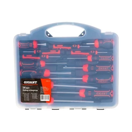 Набор отверток Gigant 14 штук GSS 14 предназначен для эксплуатации при строительных, ремонтных, монтажных и демонтажных работах. Отвертки имеют крестовой или прямой шлицы.