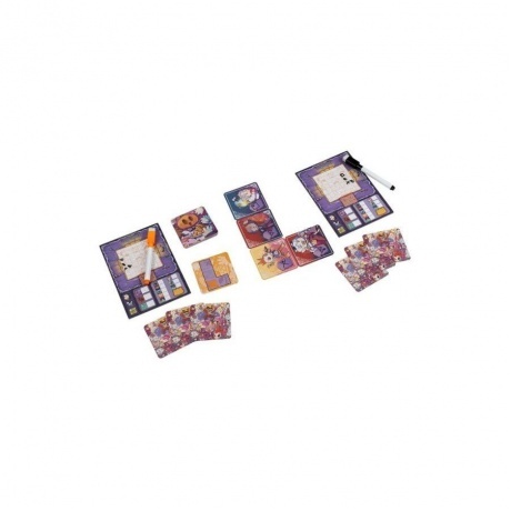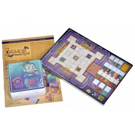 Замок Монстров — это несложная игра в жанре flip & write («переверни и запиши»), где смотреть только в свой планшет — определённо недостаточно. Приглашайте на вечеринку разных монстров и размещайте их в замке так, как выгодно именно вам. Каждое ваше решение напрямую влияет на всех соседей за столом, поэтому в этой игре вас могут быстро полюбить и ещё быстрее — возненавидеть!. Когда часы пробьют полночь, в замке короля Тыквы начнётся вечеринка кошмаров! Призраки, вампиры, ведьмы, скелеты, вся семейка Франкенштейнов и даже единороги — все в списке приглашённых. Но как вместить эту разномастную тусовку, чтобы все ещё и довольны остались — замок ведь не резиновыйx Это задачка для настоящего мастера вечеринок!. У вас в распоряжении планшет с планом замка, где вы будете зарисовывать различные фигуры с приглашёнными монстрами. Но с какими именно и в каких частях фигуры они будут располагаться — решают в том числе и ваши соперники. Тут-то и кроется вся подлость и коварство этой игры. Никогда не знаешь, чего ждать от своих соседей — могут и помочь неожиданно, а могут и подставить по полной, подсунув абсолютно не нужных вам монстров. В такие моменты атмосфера за столом, мягко говоря, накаляется!. Более того, в этой игре даже важно, с какой стороны стола вы сидите — ведь активный игрок повернёт фигуру в свою сторону так, как выгодно именно ему. Остальные игроки будут вынуждены рисовать фигуру в той ориентации, в какой она будет лежать на столе перед ними, без возможности повернуть или зеркально отразить. Такая необычная механика добавляет ещё больше кризисности и остроты взаимодействию между игроками. И даже если всё складывается для вас идеально, в любой момент кто-то может использовать особое действие и перемешать всех монстров или повернуть фигуру в другую сторону. Все ваши планы рушатся — нужно срочно придумать, как минимизировать потери и заодно как отомстить подлому соседу! Но помните — если решите намеренно портить жизнь вашим соперникам, вы и сами рискуете оказаться в крайне затруднительном положении. А если вам захочется добавить партиям больше головоломности — играйте на обратной, усложнённой стороне планшета с дополнительными условиями для получения победных очков.