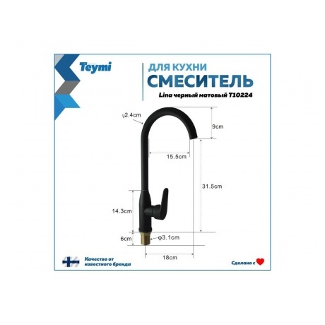 Смеситель для кухни Teymi Lina, черный матовый T10224 - фото, характеристики, описание и цена представлены на карточке товара. Для того, чтобы сразу узнать о поступлении этого товара в наш интернет-магазин, вам надо подписаться на уведомление по email, оставив адрес своей электронной почты в форме выше на данной странице.
