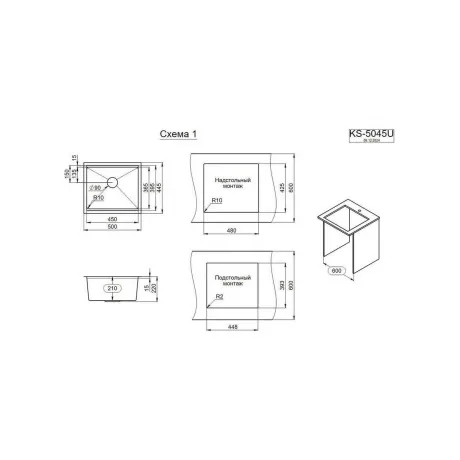 Описание товара Кухонная мойка GRANULA Kitchen Space (5045U, СТАЛЬ МАТОВАЯ)
