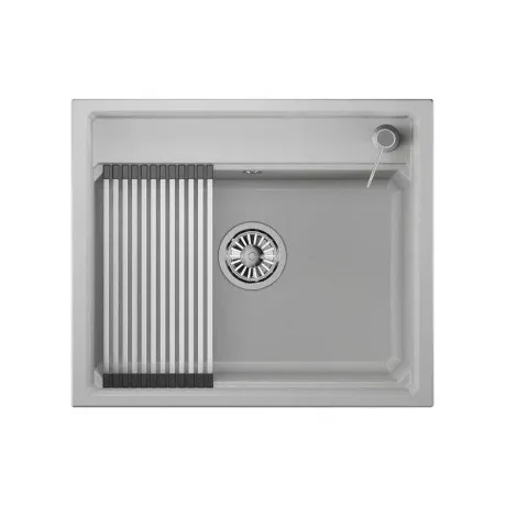 Мойка российского производителя Granula - вместительная и функциональная чаша, удобная в использовании и простая в уходе! Изготовлена из кварцевого песка и устойчива к царапинам, абразивам, а также к механическим ударам. Форма чаши адаптирована под функциональный ролл-мат. Легко моется и не боится пятен. Устойчива к высоким температурам и идеально прилегает к столешнице.