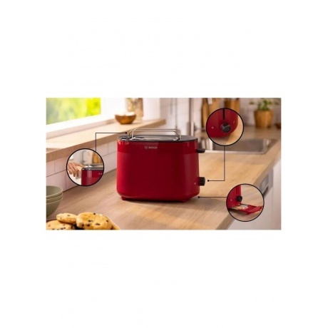 Bosch TAT2M124-это элегантный и функциональный тостер мощностью 950 Вт, который отлично подойдет для любой кухни. Благодаря возможности выпекать 2 тоста одновременно, он идеально подойдет тем, кто ценит быстрое и удобное приготовление завтрака. Надежные функции, такие как автоматическое отключение после завершения поджаривания и лоток для крошек, делают работу этого тостера чрезвычайно простой и безопасной.. Дополнительные функции, такие как автоматическое центрирование тостов, контроль подрумянивания или регулировка высоты решетки, позволяют настроить устройство в соответствии с индивидуальными предпочтениями и обеспечить равномерное поджаривание хлеба. Кроме того, тостер Bosch TAT2M121 оснащен функцией размораживания, поэтому вы можете удобно и быстро разморозить хлеб без необходимости использования микроволновой печи. Надежное исполнение и современный дизайн делают его не только полезным, но и стильным элементом кухонного оборудования.