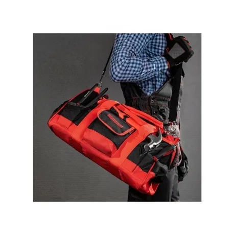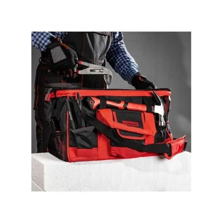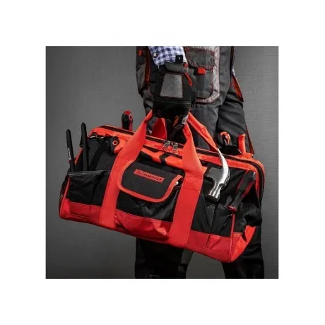 Сумка Matrix 90256 с 32 карманами, 460 х 280 х 305 мм, предназначена для транспортировки и хранения слесарных или столярных инструментов. Может использоваться для перевозки автопринадлежностей. В ней 32 кармана и вместительное основное отделение, в которых можно разместить инструменты разного размера. Сумка комплектуется наплечным ремнем с расширяющей накладкой для удобства переноски. Пригодится монтажникам, слесарям, строителям, будет полезна дома и в поездке.