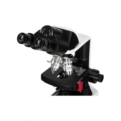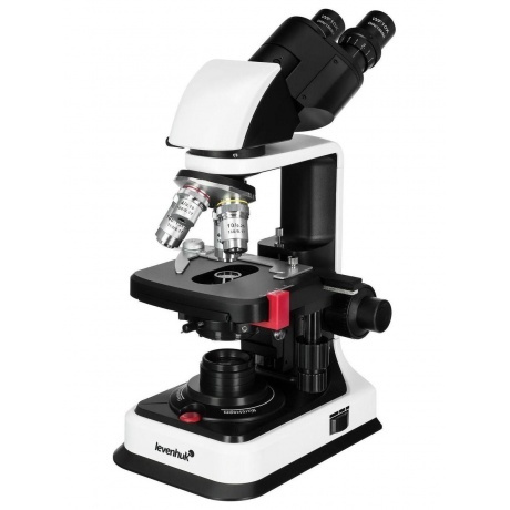 Бинокулярный биологический микроскоп Levenhuk 450B для наблюдений по методу светлого поля, в том числе и с применением масляной иммерсии, подходит начинающим, студентам и профессионалам для проведения академических исследований, работы с прозрачными образцами, органическими препаратами, бактериями, микроорганизмами и т. д. Прибор используется в сферах медицины, микробиологии, биохимии, ветеринарии, экологии, защиты окружающей среды и других. Общая кратность микроскопа составляет 40–1000х – этого достаточно для решения большинства любительских и профессиональных задач. Визуальный узел насадки имеет наклон 30°, что делает работу с прибором физиологичной и удобной для шеи и спины, также насадка поворачивается вокруг своей оси на 360°. В конструкции микроскопа использованы широкопольные окуляры WF10x/18 мм, дающие увеличение 10 крат. Револьверное устройство вмещает 4 ахроматических объектива с увеличением 4х, 10х, 40х и 100х, обеспечивающих стабильно яркое, четкое и детализированное изображение без хроматических аберраций, виньеток и расплывчатости. Объективы 40х и 100х оснащены пружинящими оправами, а 100-кратный объектив также можно использовать для масляной иммерсии. Образцы для исследований помещаются на двухкоординатный механический предметный столик, под которым располагаются остальные важные элементы конструкции микроскопа: подсветка, состоящая из светодиода 1 Вт с коллектором, и конденсор Аббе с ирисовой диафрагмой и специальным держателем для фильтра. Levenhuk 450B отличается высокой мобильностью, поскольку может работать как от сети переменного тока, так и от 3 батареек типа АА – удобно для транспортировки, путешествий, учебы, поездок на выставки и научные мероприятия.