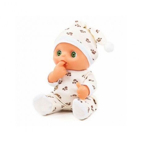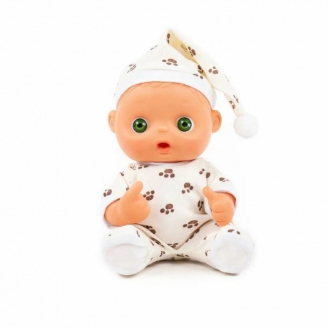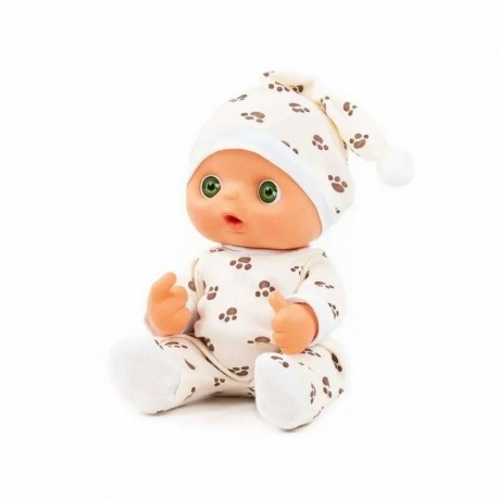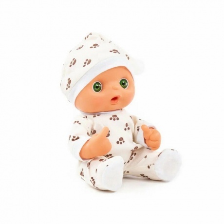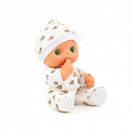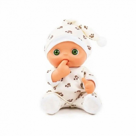 У куклы подвижные ручки и ножки, поворачивается голова. Углубление во рту позволяет вставлять в него пальчики правой и левой ручек. Глазки куклы выразительные, незакрывающиеся. Тело куклы полностью выполнено из ПВХ. Комбинезон и колпачок выполнены из качественного текстиля (велюр). Соответствует требованиям безопасности продукции.