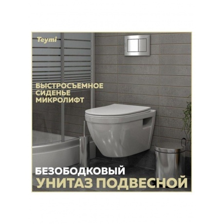 • Унитаз подвесной Teymi Vitra безободковый, сиденье микролифт T40804 - фото 13