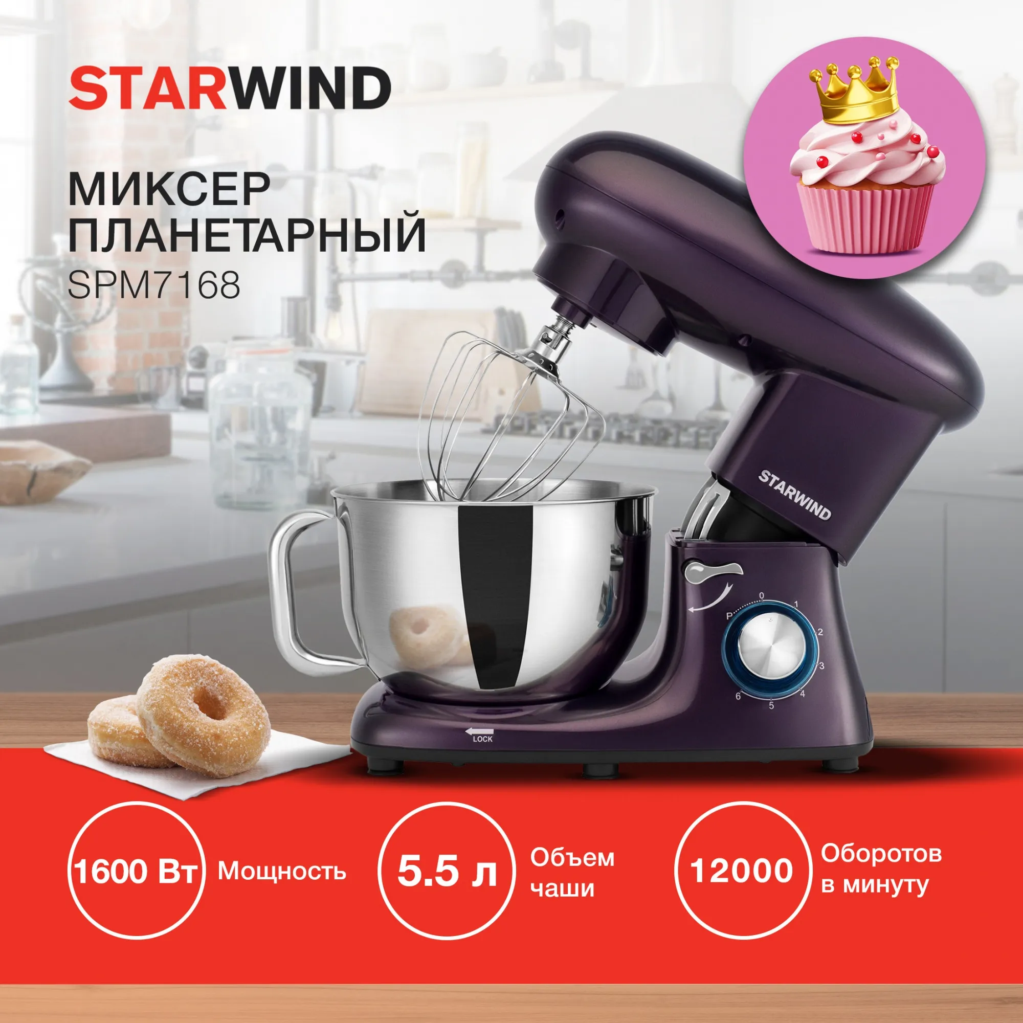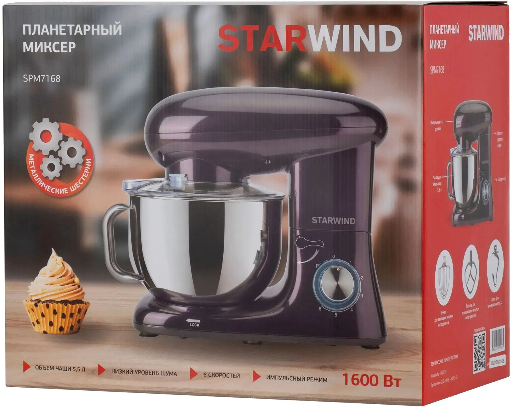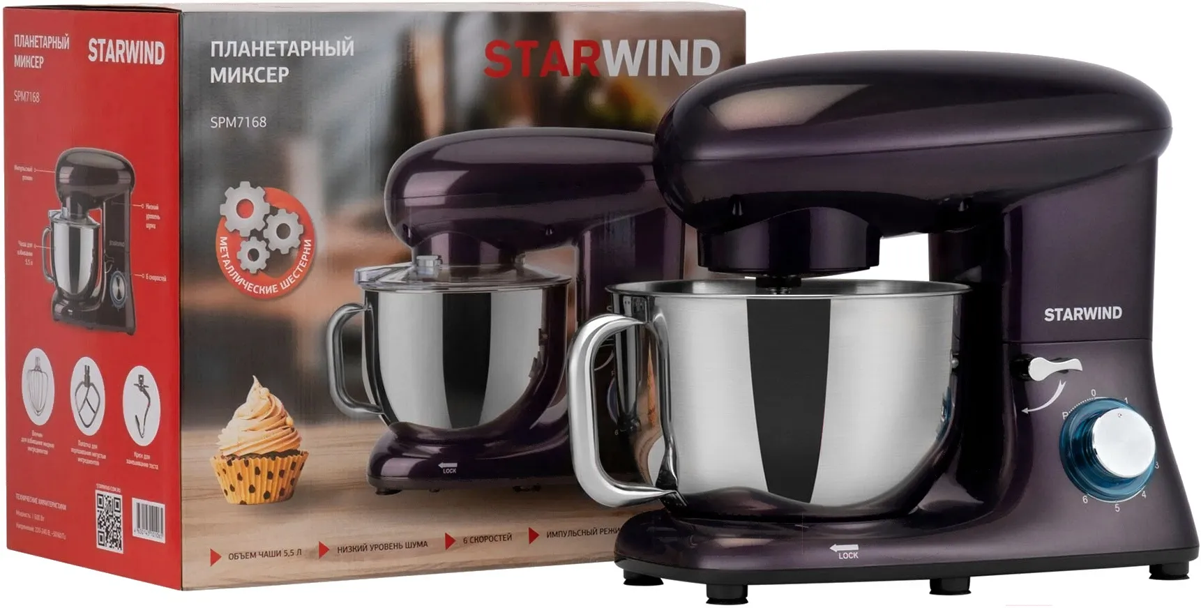 Описание товара Миксер планетарный Starwind SPM7168 1900Вт ежевичный