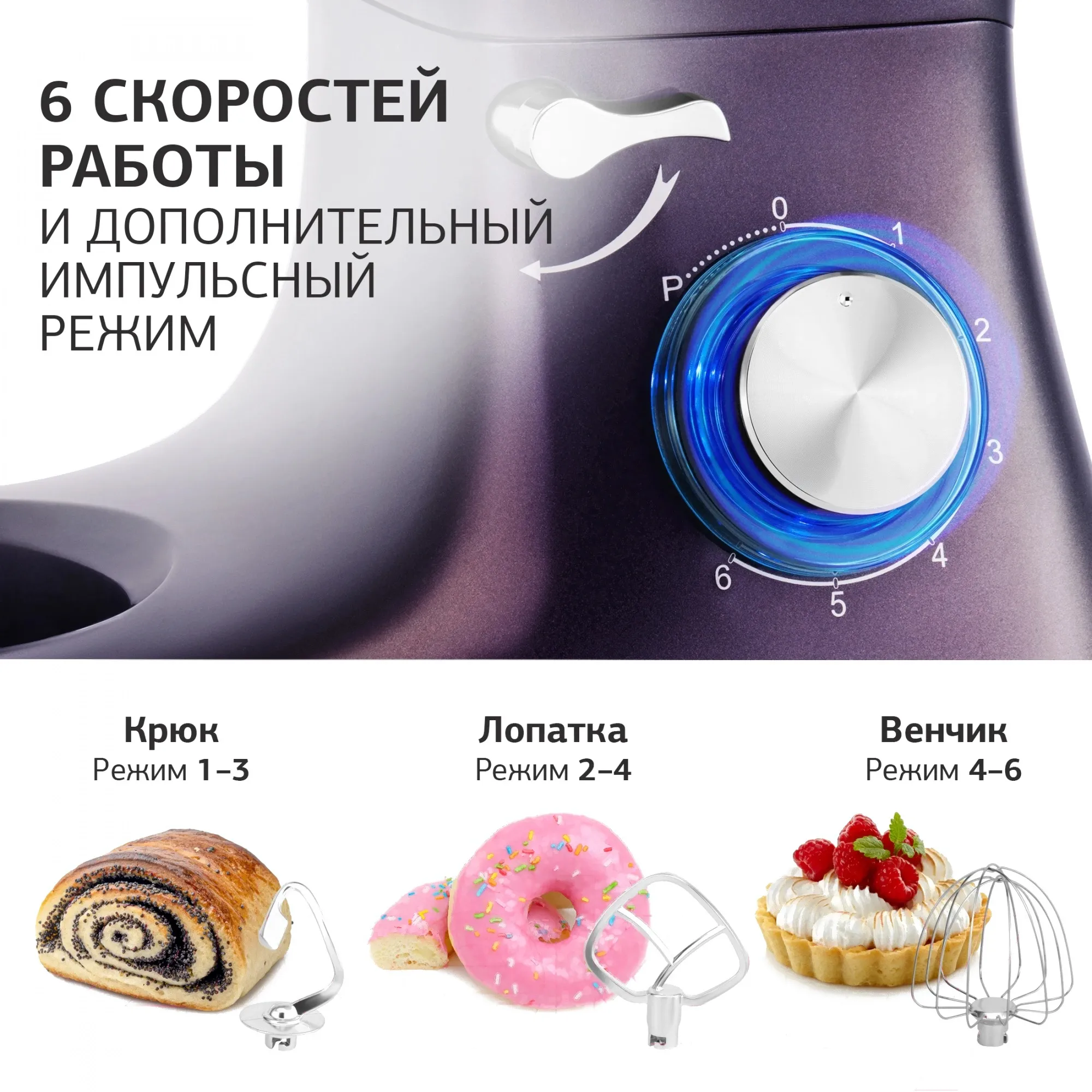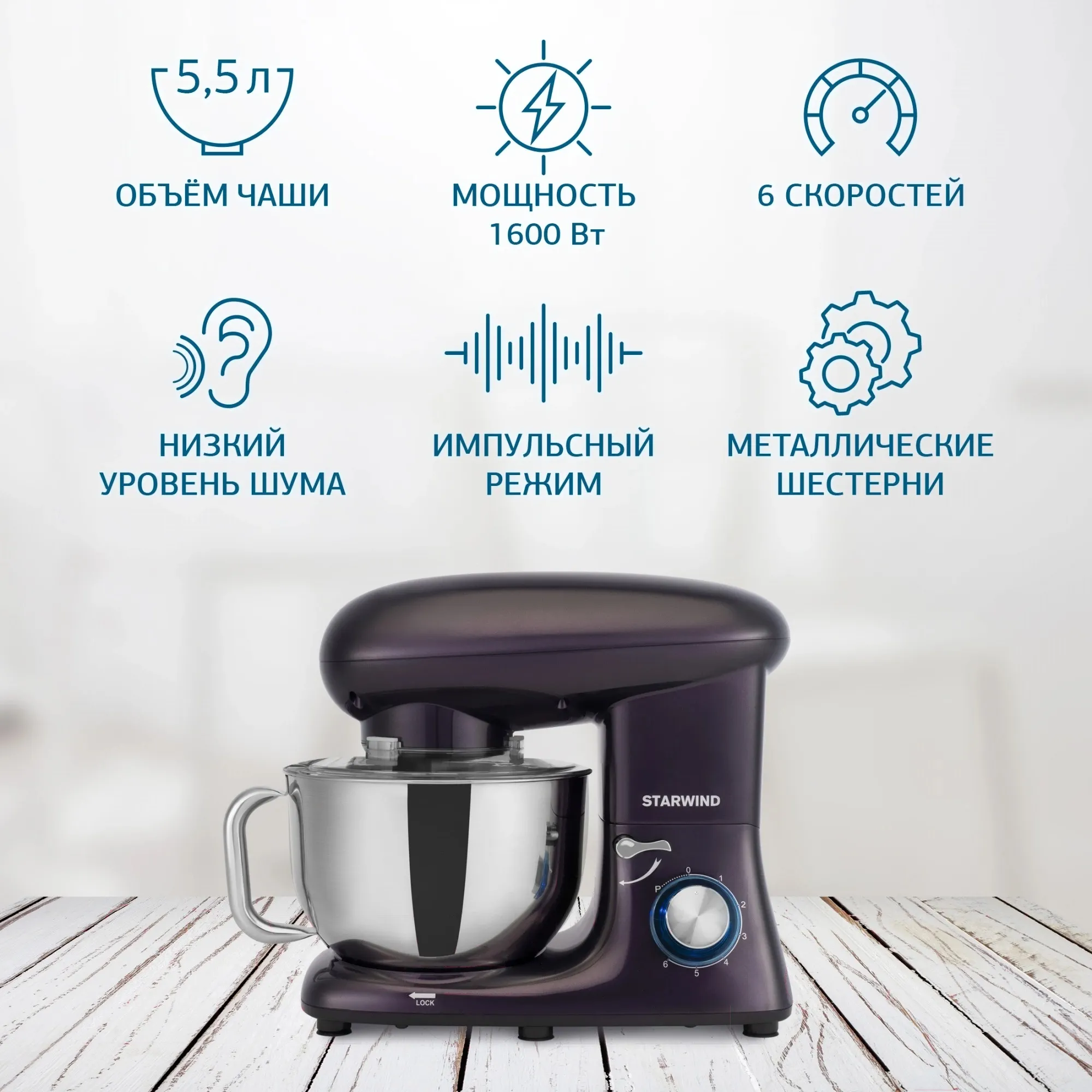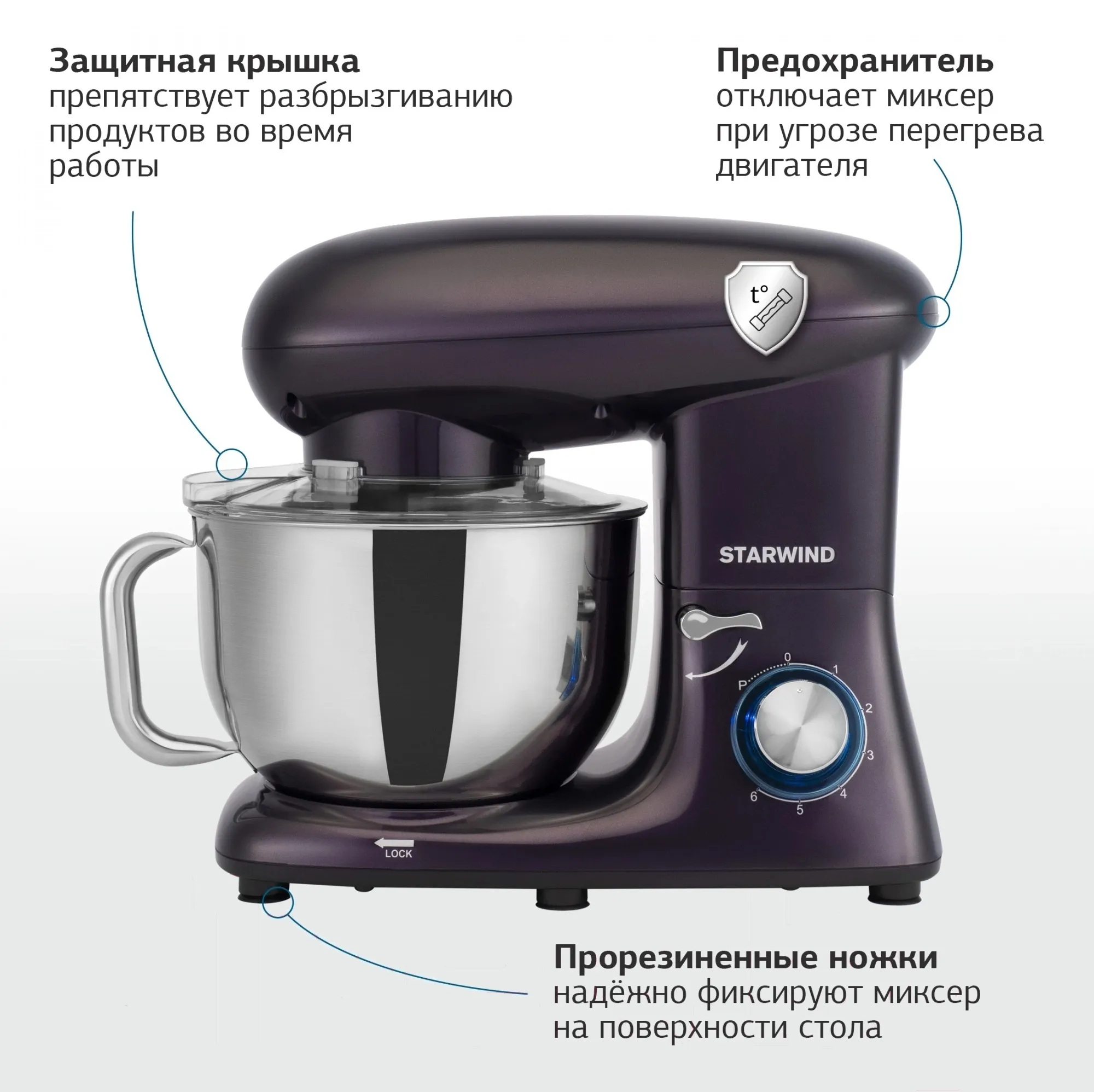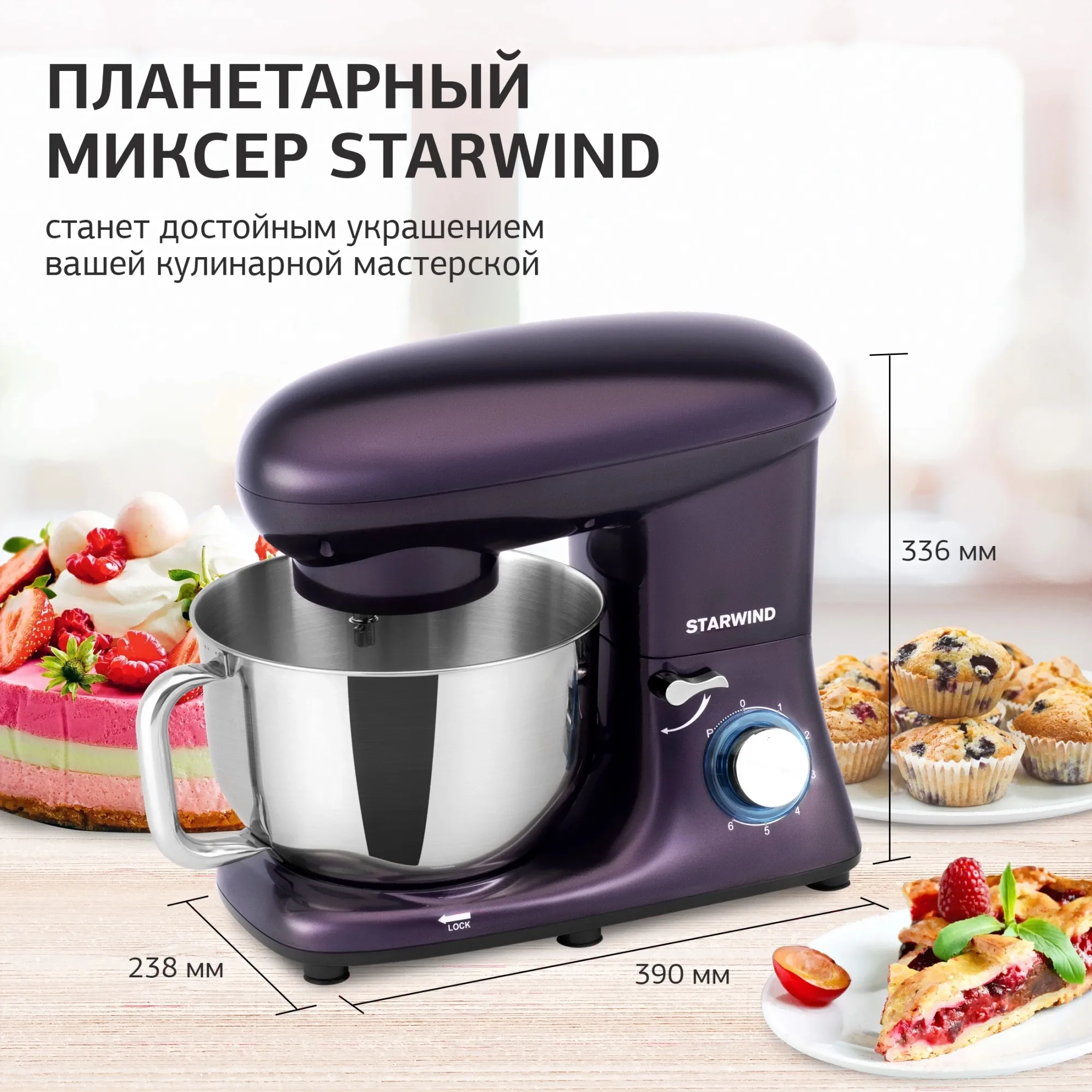 Описание товара Миксер планетарный Starwind SPM7168 1900Вт ежевичный