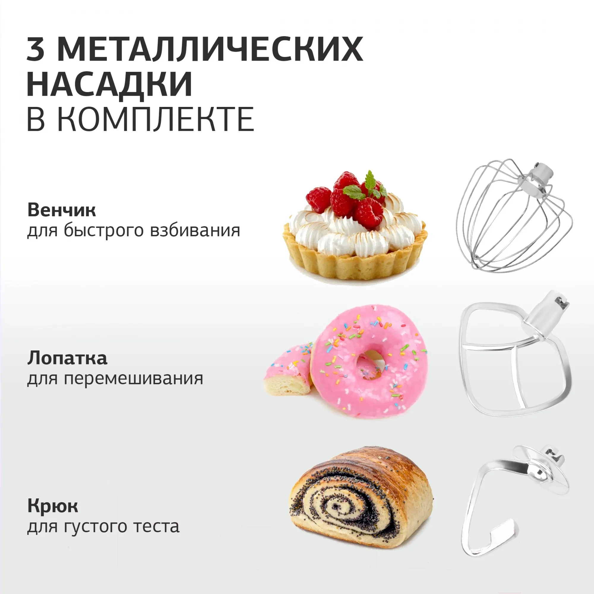 Миксер StarWind SPM7168 может стать незаменимым помощником на кухне. Прибор обладает оптимальной мощностью в 1600 Вт. При этом миксер работает достаточно тихо. Материал корпуса – металл; пластик высокого качества. Это значит, что прибор может служить долгое время. С помощью миксера удобно готовить пюре, соусы и другие блюда, так как устройство хорошо взбивает, измельчает и смешивает продукты и жидкости. Количество насадок у данной модели – 3 оптимально для воплощения различных рецептов. Приятный цвет модели может отлично гармонировать с другой техникой на кухне и интерьером помещения.