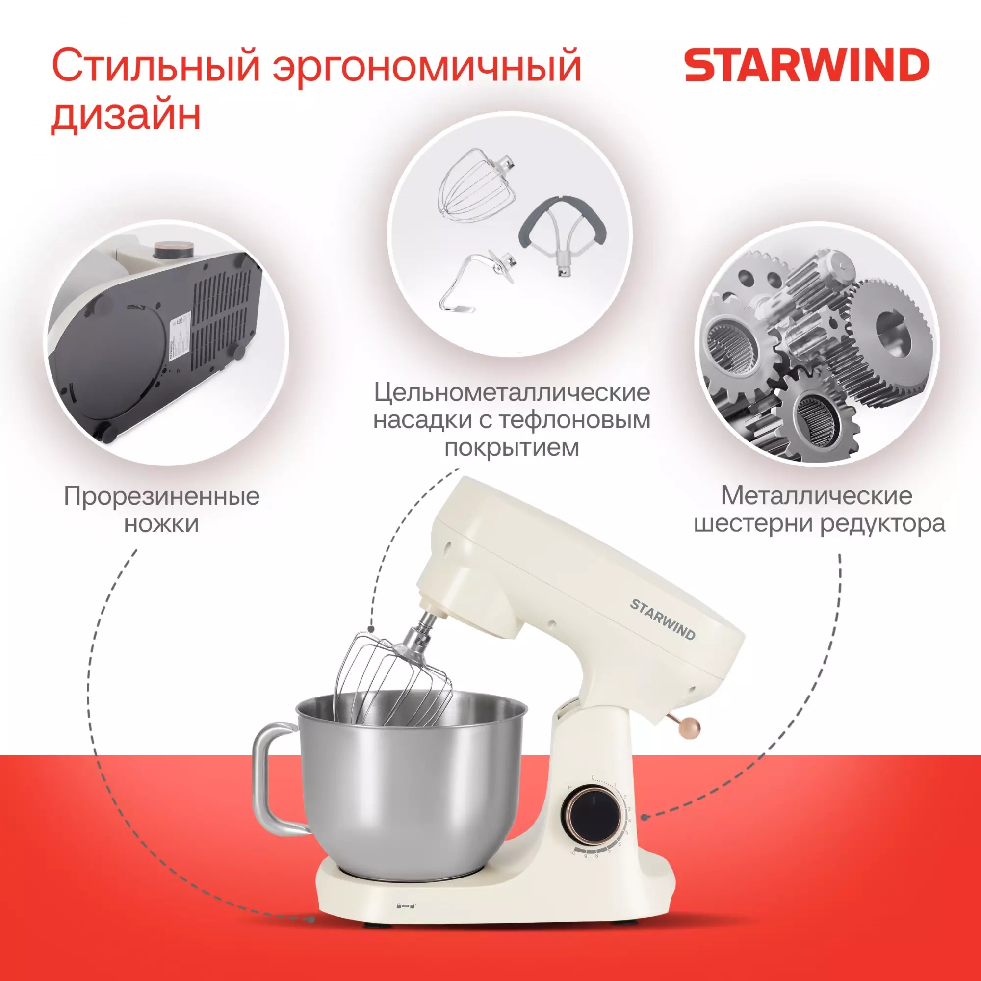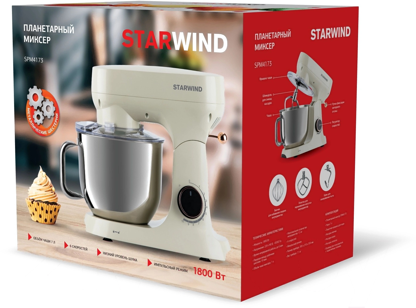 • Миксер планетарный Starwind SPM4173 1800Вт кремовый - фото 24