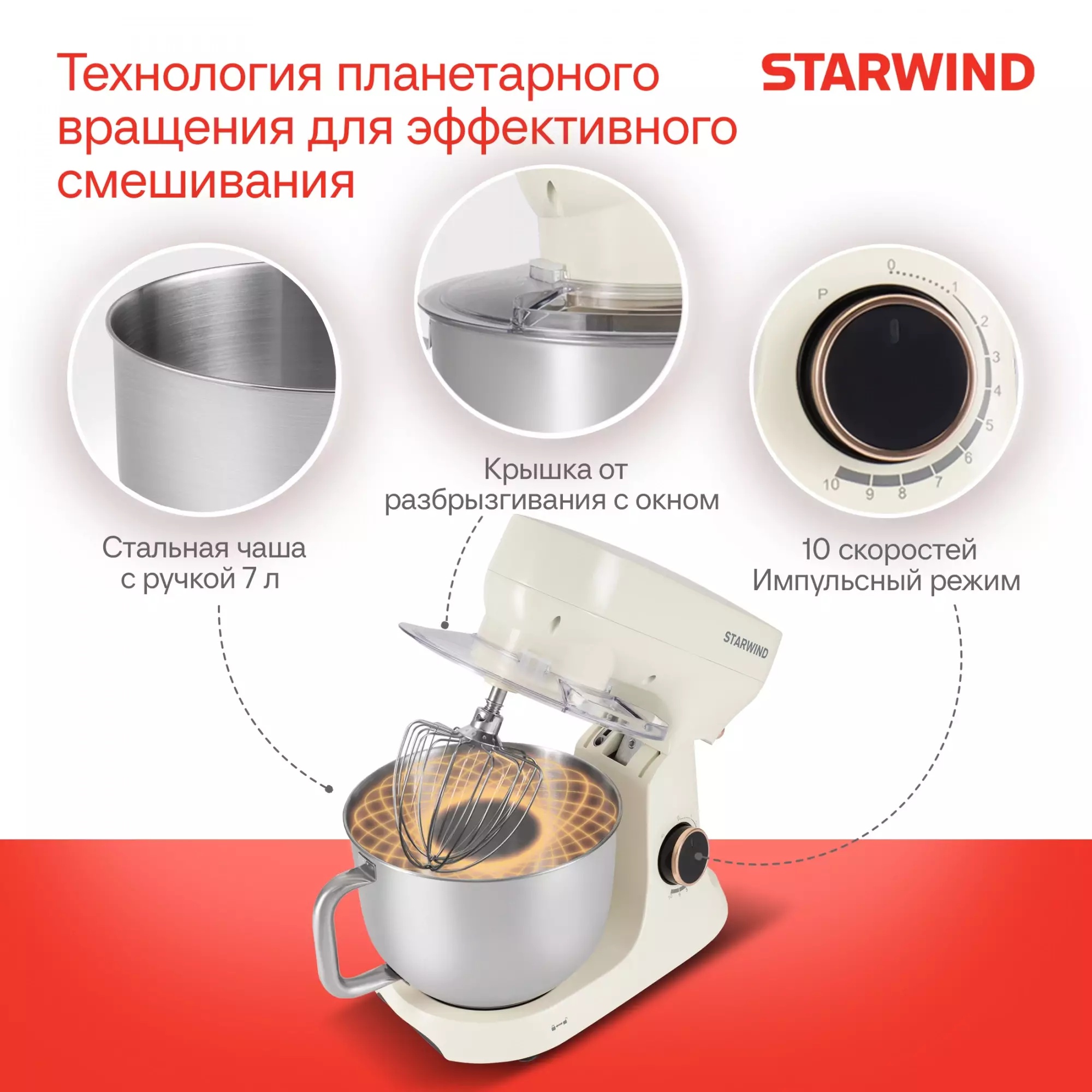 • Миксер планетарный Starwind SPM4173 1800Вт кремовый - фото 8