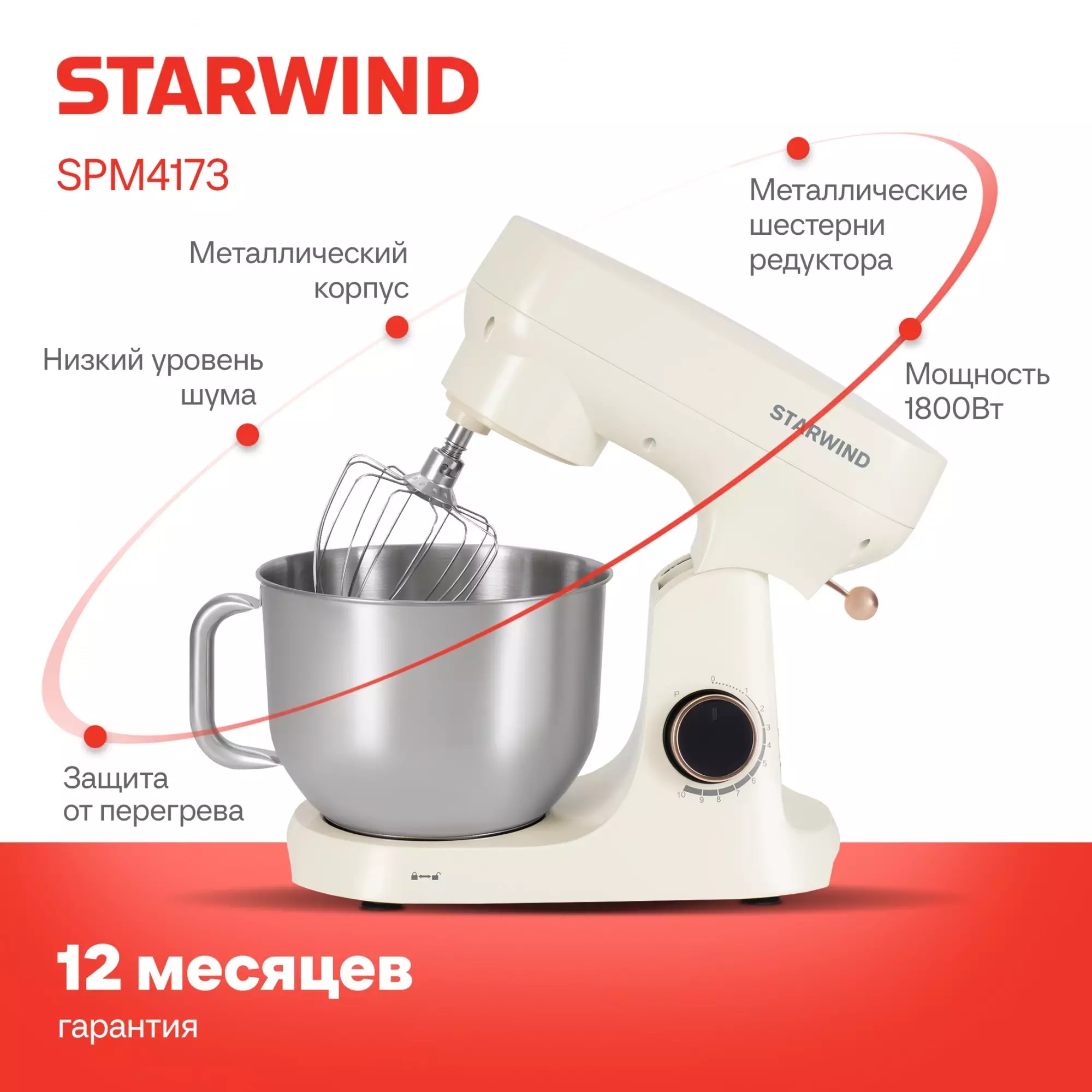 • Миксер планетарный Starwind SPM4173 1800Вт кремовый - фото 18
