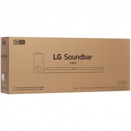 Саундбар LG S90TY в черном корпусе выпускается как домашняя акустическая система для телевизора. Акустический комплекс с поддержкой многоканального объемного звука 5.1.3 отличается общей мощностью всех компонентов. Настенная акустическая панель шириной 1250 мм с подключением через интерфейс HDMI дополнена отдельно стоящим сабвуфером с черным корпусом из переработанного пластика. Подключение низкочастотного динамика по беспроводному Bluetooth-каналу обеспечивает свободу выбора места его установки. Саундбар LG S90TY комплектуется пультом дистанционного управления. Установив на смартфон приложение LG Bluetooth Remote, вы сможете удаленно управлять акустической системой. При наличии на мобильном устройстве голосовых помощников Alexa или Google Ассистент вы сможете управлять работой саундбара через эти ассистенты.