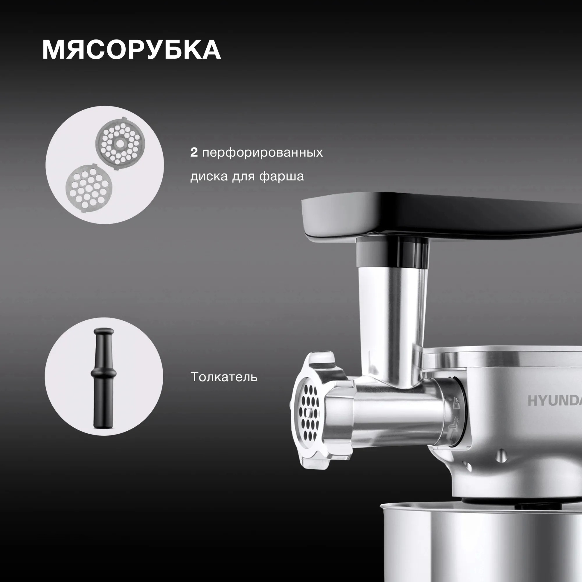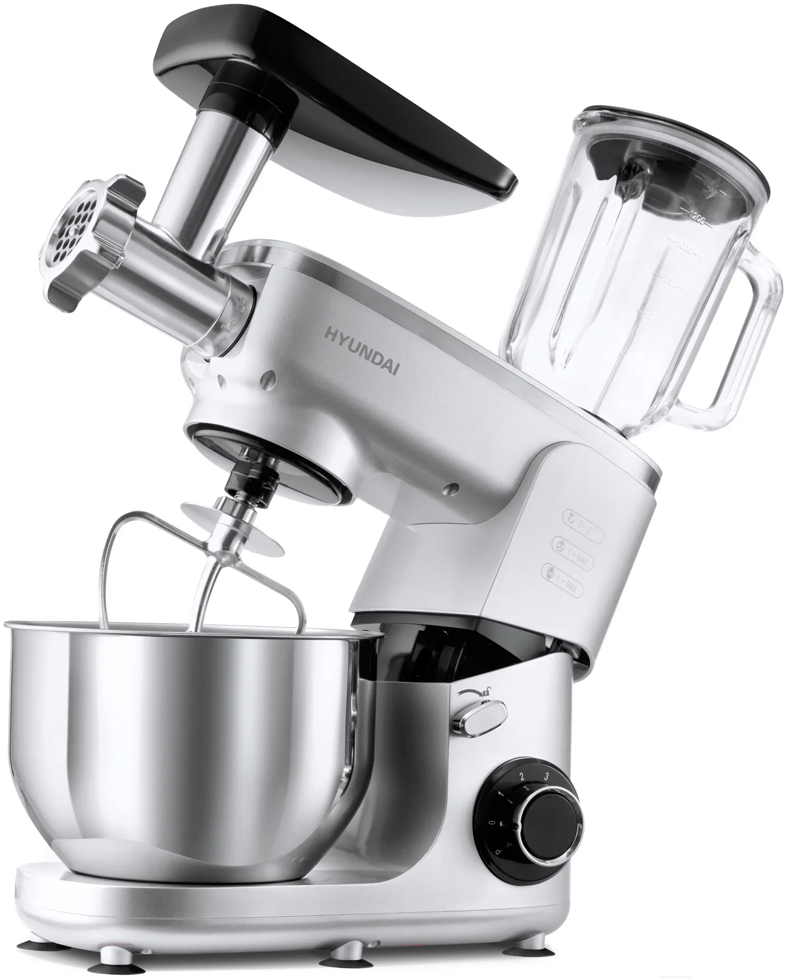 Кухонная машина Hyundai HYMS7651 планетар.вращ. 1400Вт серебристый купить с доставкой в Новосибирске