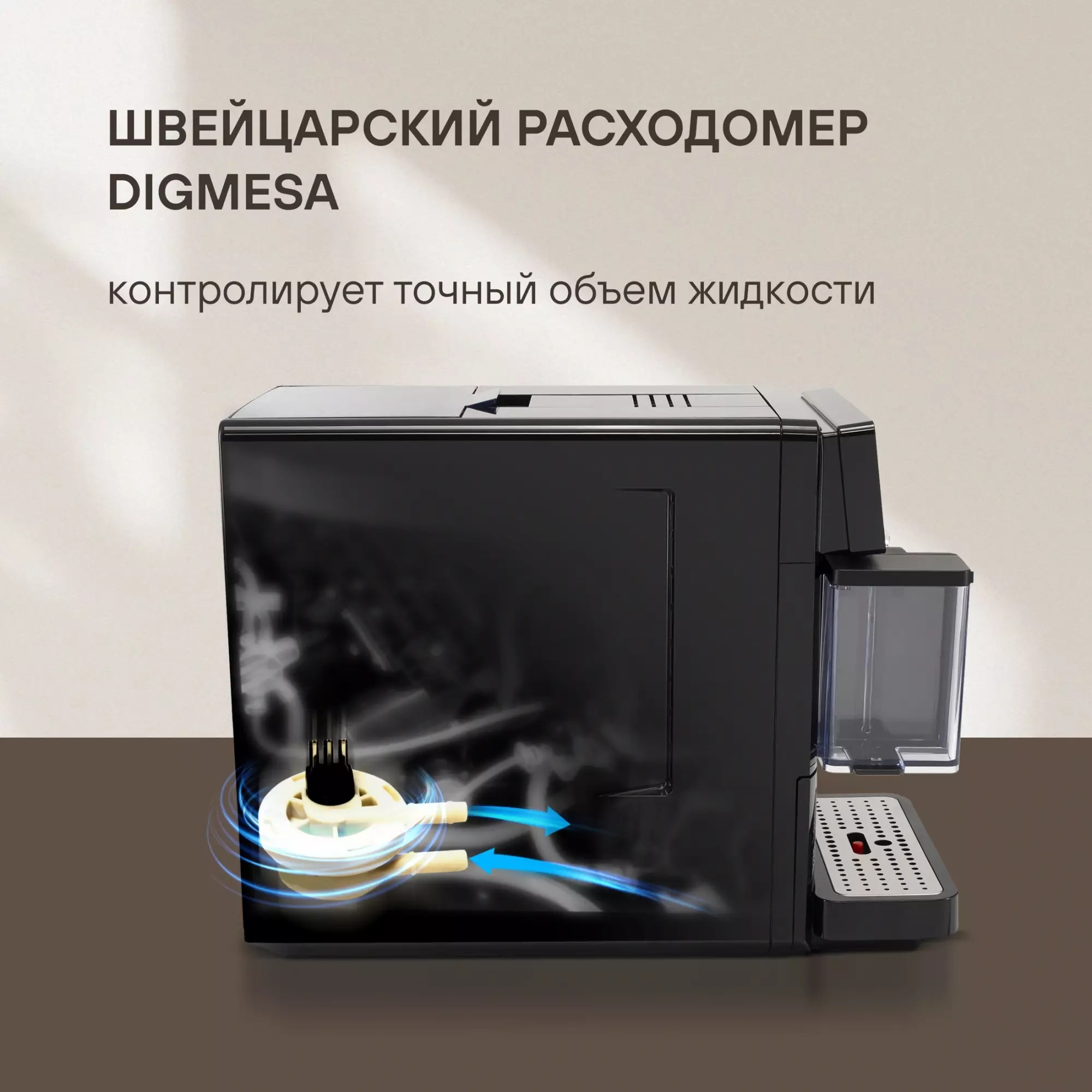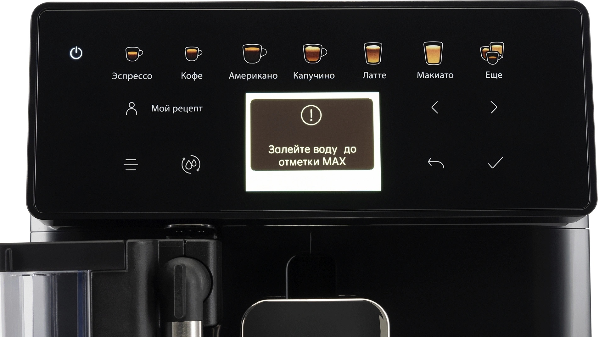В качестве сырья подходит молотый и зерновой кофе, который измельчает встроенная кофемолка с регулировкой степени помола (девять уровней).