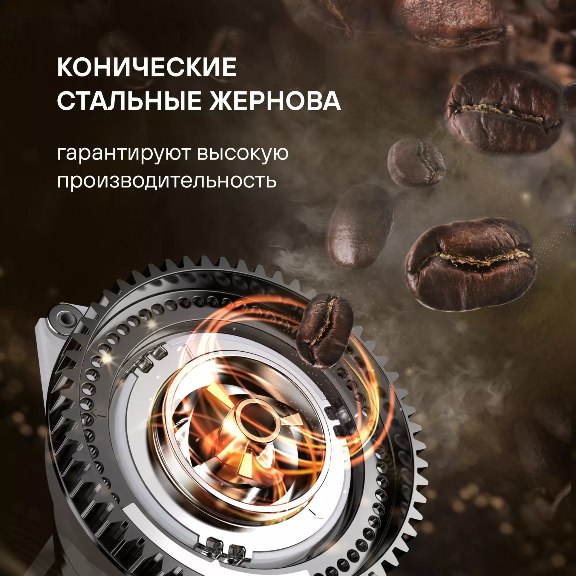 Объем съемного бака для воды — 1,3 л, резервуара для зерен — 200 г.