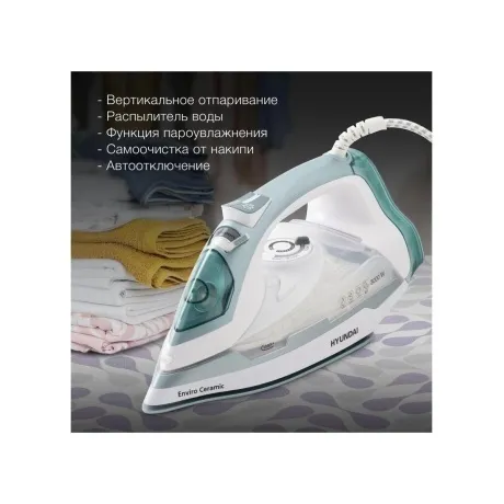Описание товара Утюг Hyundai H-SI01223 3000Вт белый/изумрудный