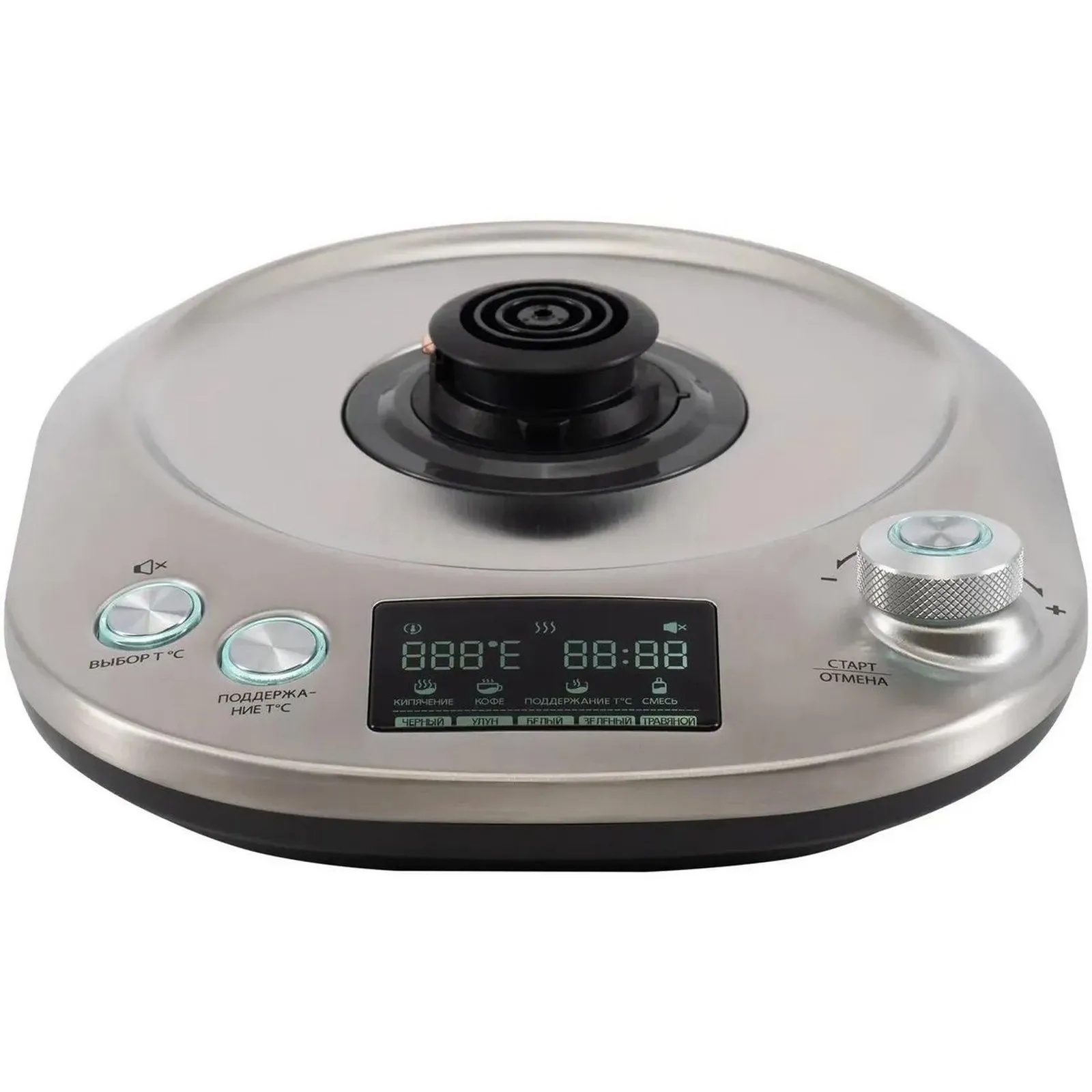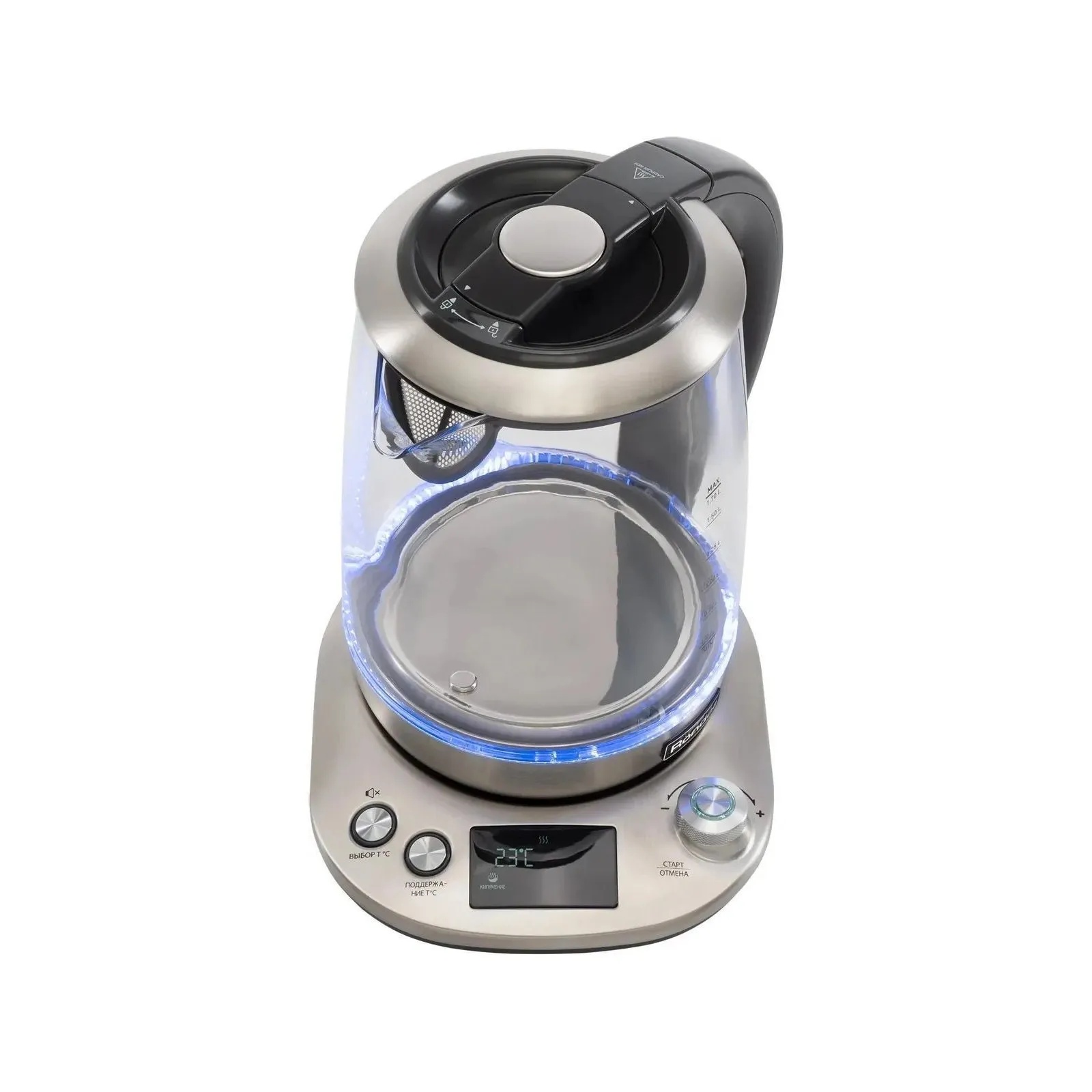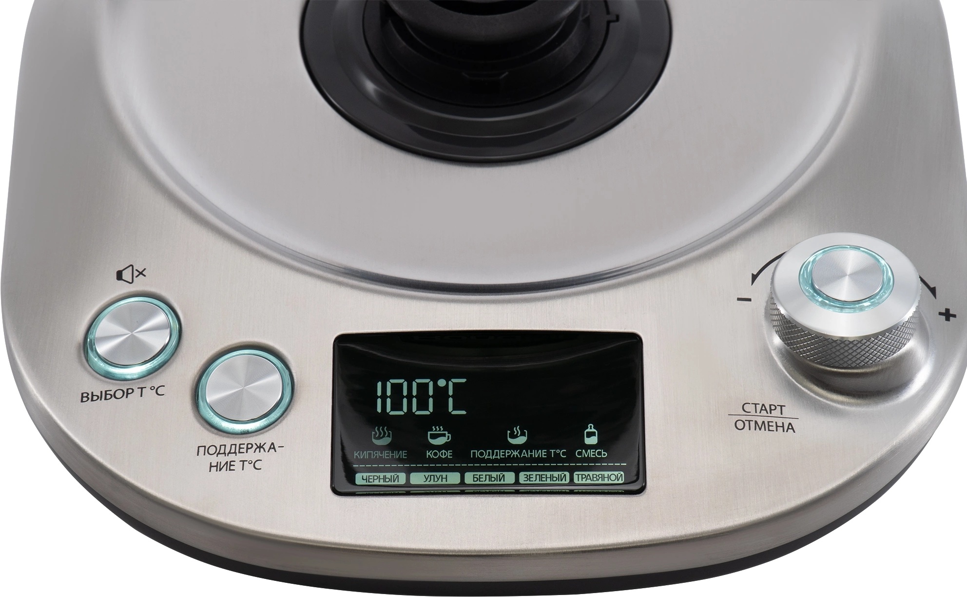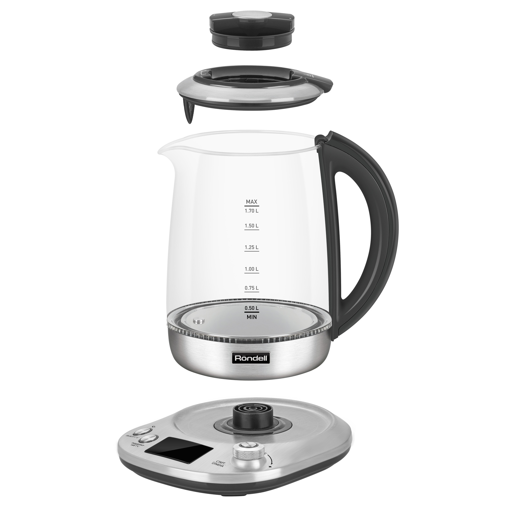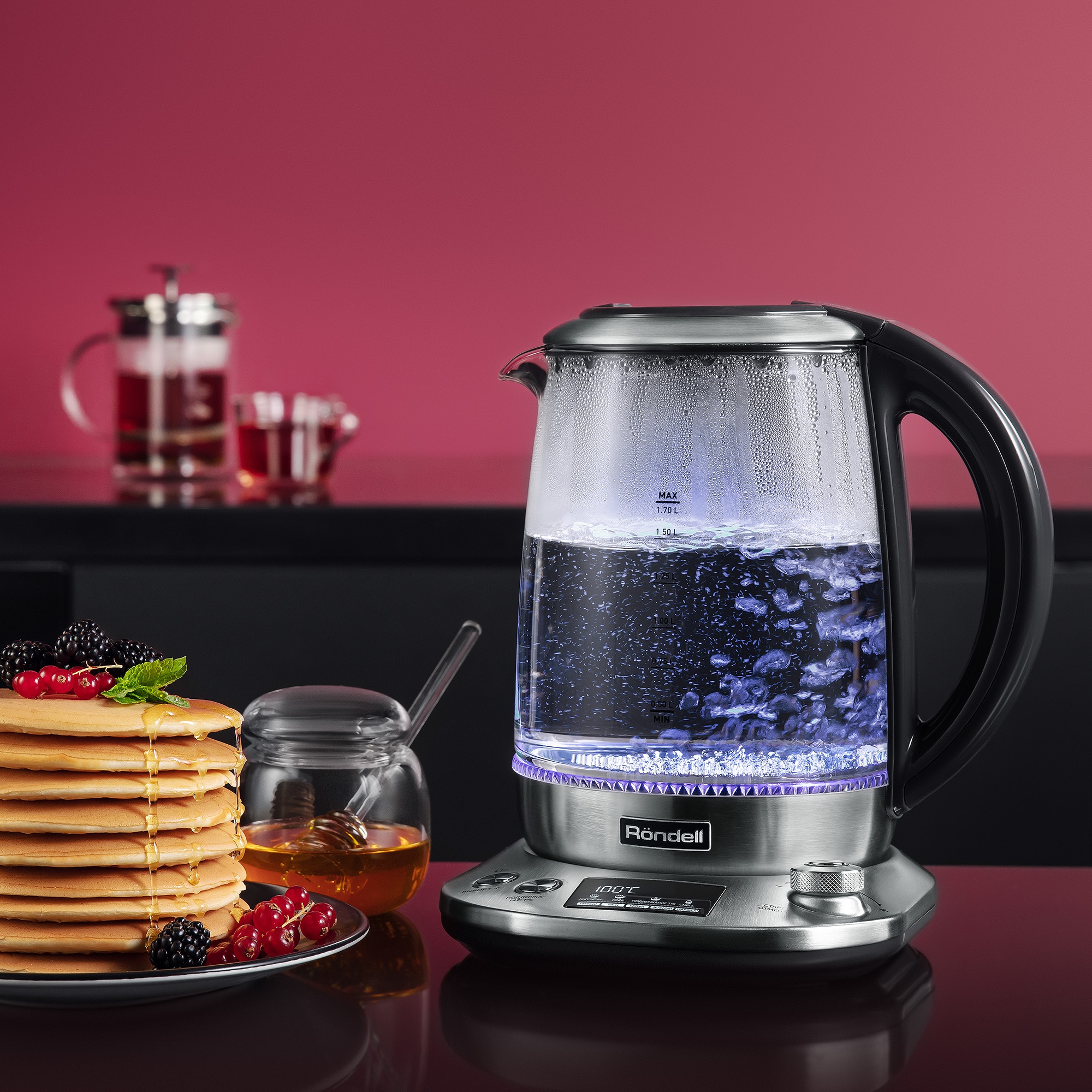 Многофункциональность и современный дизайн электрического чайника RDE-1003 оценят даже самые взыскательные покупатели. Благодаря максимальной мощности в 2200 Вт он вскипятит до 1.7 л воды за считаные минуты. Прибор имеет электронную базу с большим LCD-дисплеем, с помощью которого вы сможете выбрать один из шести автоматических режимов для приготовления напитков или отрегулировать температуру воды от 40° до 100° с шагом в 1°. Корпус чайника выполнен из термостойкого стекла и декорирован стильными элементами из нержавеющей стали. Красивая подсветка делает использование устройства особенно приятным. Благодаря продуманной конструкции чайник поворачивается на 360° при установке на базу. Следить за уровнем воды помогает специальная шкала, нанесенная на стенку стеклянного корпуса. Чайник оснащен сертифицированным английским контроллером STRIX, который гарантирует 15 000 циклов кипячения и продлевает срок службы устройства в 5 раз. В приборе продумана каждая деталь! Например, наливать воду в чайник можно через специальное открывающееся отверстие в крышке. При желании крышку прибора можно снять полностью. Устройство также имеет несколько особенных функций: поддержания температуры на протяжении двух часов, памяти (устройство запоминает и воспроизводит последнюю настройку температуры), а также «спящий режим», когда чайник полностью отключается через 20 минут после последнего включения. В случае необходимости вы можете остановить кипячение или убрать звуковые сигналы при помощи соответствующих кнопок. Фильтр от накипи из нержавеющей стали, расположенный в носике чайника, легко снять и промыть. Чайник оснащен защитой от перегрева и автоматически отключается при закипании или отсутствии в нем воды. Купите чайник RDE-1003 и подарите себе непревзойденный уровень комфорта!