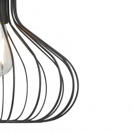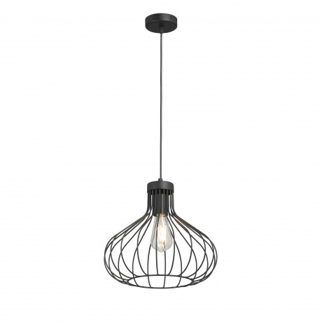 подвесной светильник vitaluce v2851-1/1s в стиле лофт, изготовлен из металла, имеет черный цвет и один плафон. предназначен для лампы под цоколь е27 с максимальной мощностью 40 вт. высота светильника до 132 см, диаметр 33 см.