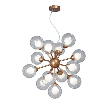 подвесная люстра vitaluce v4855-7/13s с 13 лампами g9 мощностью 28 вт каждая, общая мощность 364 вт, цвет арматуры золото, цвет плафона прозрачный, подходит для основного освещения помещений до 26 кв.м.