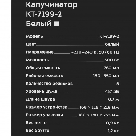 Описание товара Капучинатор Kitfort КТ-7199-2 белый