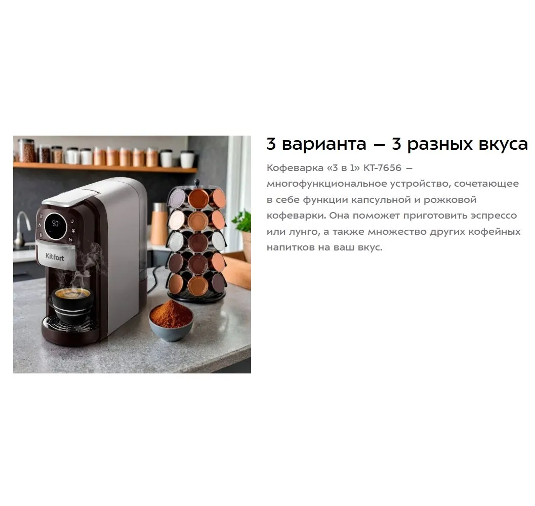 Описание товара Капсульная кофемашина Kitfort КТ-7656