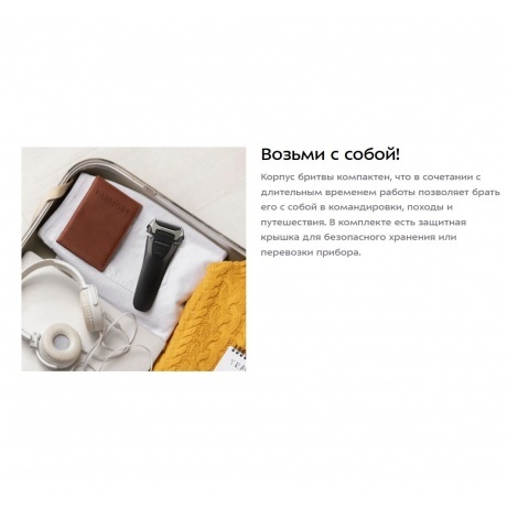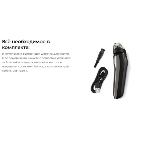 бритва, документация, защитная крышка, кабель USB, щетка для очистки