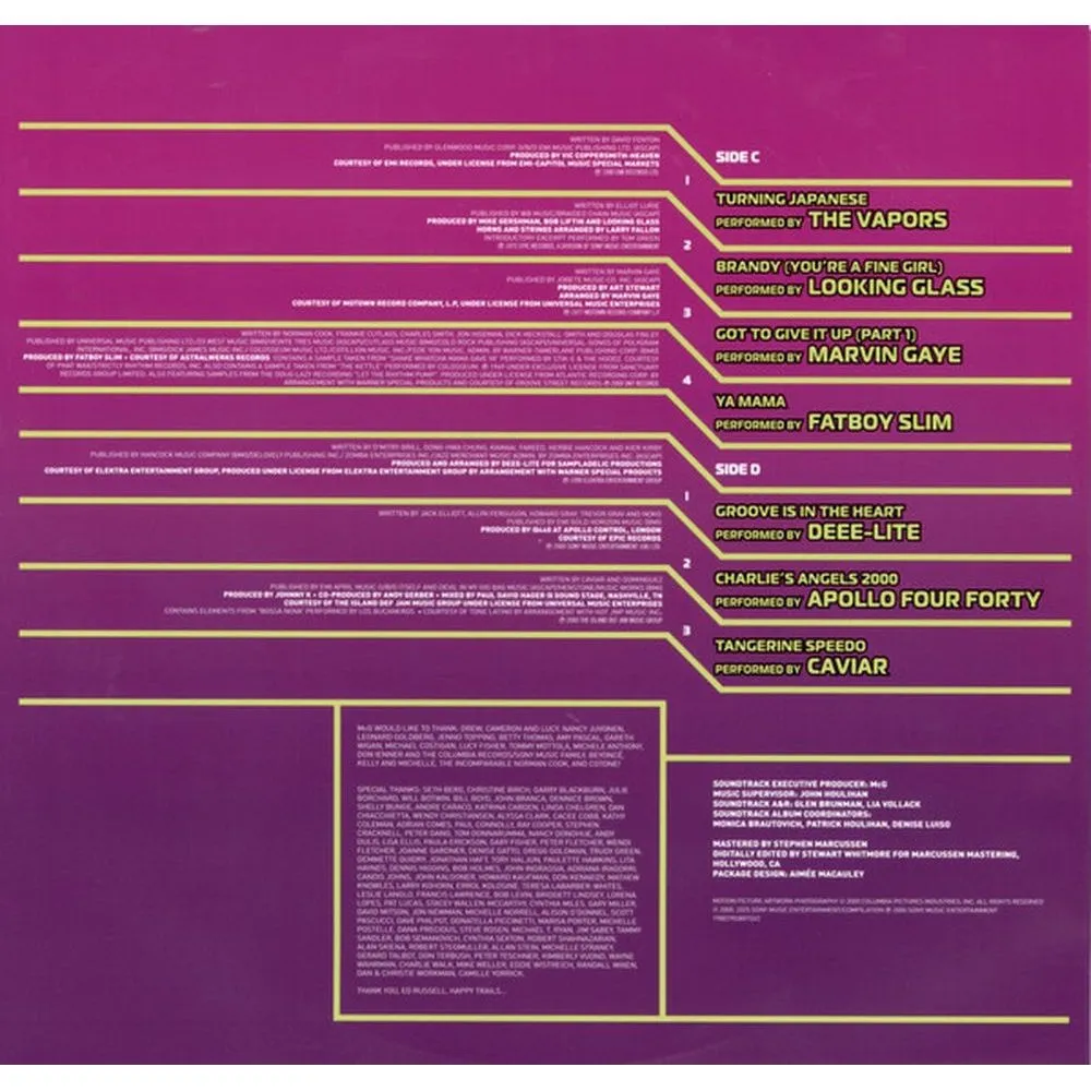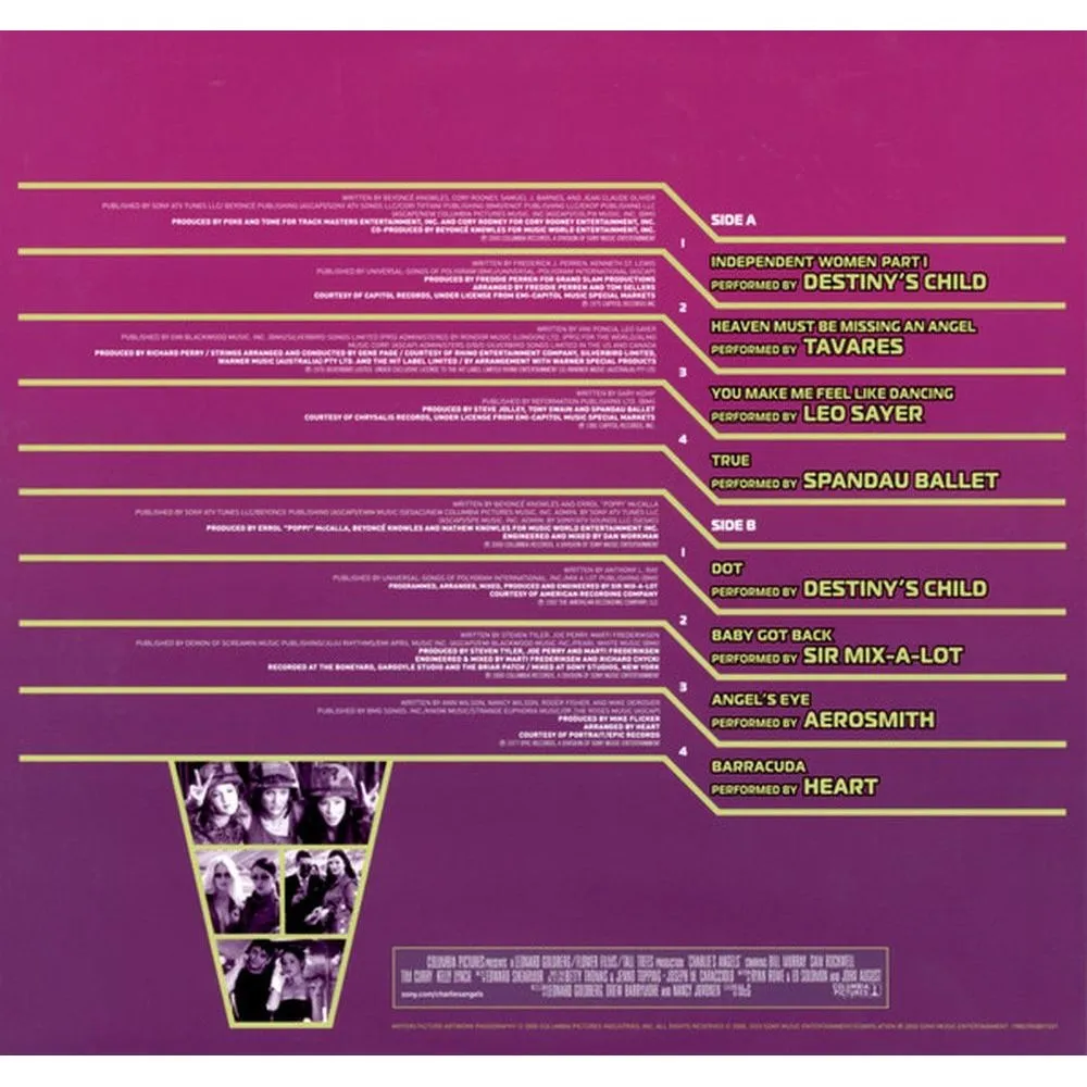 Саундтрек к американскому комедийному боевику 2000 года«Charlie's Angels». Он был выпущен первоначально 24 октября 2000 года. Издание на виниле. 15 треков, включая классические хиты Лео Сэйера «You Make Me Feel Like Dancing», Heart «Barracuda» и Марвина Гэя «Got to Give It Up, Part 1», а также треки времён выхода фильма, в частности, суперхит Destiny's Child «Independent Women, Pt. 1».