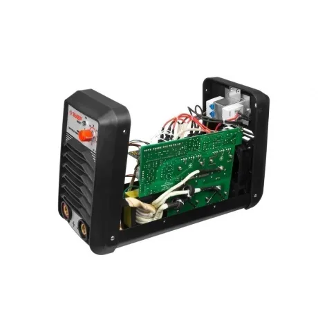 Встроенная система защиты от перегрузки и перегрева, а также принудительное охлаждение гарантируют безопасность и увеличенную производительность. Высокий запас по ПВ (до 75% на максимальном токе). Дисплей для более точного регулирования выходного тока. Возможность сварки методом TIG LIFT, который обеспечивает превосходную сварку неплавящимся электродом при подключении TIG горелки и подаче защитного газа. Функция VRD, снижающая выходное напряжение до безопасного уровня, что обеспечивает безопасность оператора, который может без всякого риска дотрагиваться до электрода, пока не будет возобновлена сварка. Снижение тока при залипании электрода (или «Антиприлипание», «Anti-stick»), позволяет уберечь электрод от прокаливания. «Горячий старт» (или «Hot-start») обеспечит гарантированное отличное расплавление сварочной ванны и наилучшее качество шва даже в начале сварки. «Форсаж дуги» (или «Аrc-force») увеличивает силу тока на очень короткий промежуток времени, снижая вероятность залипания электрода. Устойчивая работа при характеристиках сети, отличающихся от номинальных. Сварка на постоянном токе обеспечивает лучшее качество сварочного шва по сравнению с переменным. Благодаря корректору входной мощности, разрешается подключать к генератору мощностью ниже на 15%, чем при работе с обычными сварочными инверторами. Защита электронных компонентов от пыли, перегрева и окисления (покрытие платы специальным высокотемпературным лаком). Компактный размер, удобная рукоятка и небольшой вес увеличивают мобильность и позволяют работать в труднодоступных местах. Сварочные кабели увеличенной длины в комплекте: рабочий – 3 м и массовый – 2 м. Держатель с медными губками обеспечит высокий ресурс и отличный контакт с электродом, а кабель массы вместе с медным зажимом обеспечит надежное соединение.