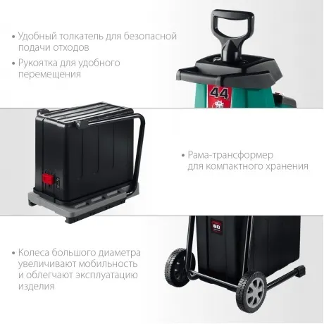 Мощный, бесшумный и производительный измельчитель ЗУБР будет хорошим помощником на каждом участке. Обычная задача переработать все собранное и спиленное больше не будет проблемой. Просто подвиньте поближе измельчитель - и не заметите, как работа уже кончилась. Универсальный инструмент для утилизации садовой растительности любого типа. Мощный двигатель с большим крутящим моментом, оснащенный планетарным редуктором с огромным передаточным числом. Очень тихая работа благодаря специальной конструкции режущего инструмента. Зубчатое режущее колесо автоматически затягивает поступающие отходы и тщательно перемалывает их. Регулировка степени измельчения позволяет перерабатывать как траву, так и толстые ветки, получать на выходе мульчу разной фракционности, а также подготавливать твердые отходы большого диаметра к повторной переработке для еще более тщательного измельчения. Электромагнитный выключатель предотвращает случайное включение при восстановлении напряжения после пропадания. Защита двигателя от перегрузки. Блокировка включения при снятом приемном баке. Рама-трансформер для компактности хранения. Приемный контейнер большого объема для отходов в комплекте. Комплектация: измельчитель, колеса с крепежом, толкатель, контейнер для отходов, ключ, руководство по эксплуатации.