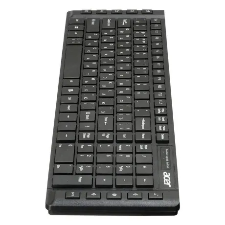 Проводная клавиатура Acer OKW010 имеет кабель, а также интерфейс USB. Данная модель легкая, компактная, имеет набор необходимых функциональных клавиш. Изделие изготовлено из пластика высокой прочности, конструкция тонкая. Цвет клавиатуры черный, не маркий. Клавиши квадратные с белыми надписями, имеют мягкий, свободный ход. Руки при работе на клавиатуре не устают.