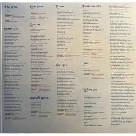 Racing With Blinders On, From The Ground, Black Swan, Morning s, Broken, Goodbye Outrage, Journeyman, Tangerine, Solaris, Heart Of The Valley, Man In A Two Peace Suit, All I Need Is Love, A Species, Northern Lights, Hidden Angles, Serpentine, Looking For Answers, Telescope, Fools Gold, Between Hope & Fear, Islands, Racing With Blinders On, From The Ground, Black Swan, Morning s, Broken, Goodbye Outrage, Journeyman, Tangerine, Solaris, Heart Of The Valley, Man In A Two Peace Suit, All I Need Is L