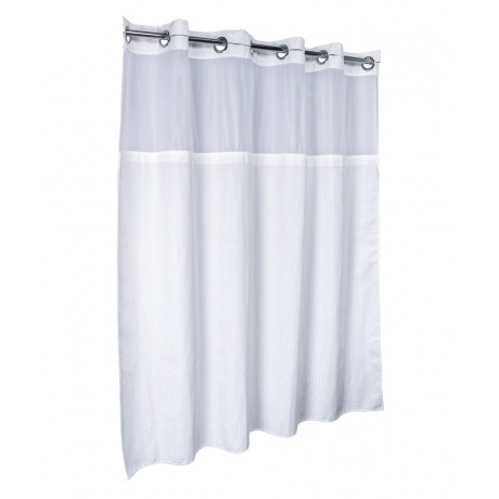 Штора изготовлена специально для комплектации отелей и материал обладает высокой износостойкостью и прочностью. Штора легко и быстро устанавливается и снимается за благодаря универсальному креплению не требующих дополнительных колец. Съемная подложка пропитана водоотталкивающим раствором и быстро отстегивается без демонтажа всей шторы что позволяет сэкономить на стирке. Основная штора практически не взаимодействует с водой и долго сохраняется в опрятном виде. Прозрачная вставка дает больше света и позволяет просматривать окружающее пространство.