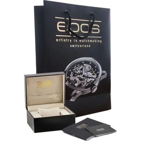 Мужские механические часы с автоподзаводом в круглом корпусе с сапфировым стеклом. Главным принципом часов марки «Epos» остается истинно швейцарское качество при их ценовой доступности. Базовые механизмы закупаются у лучших поставщиков (ЕТА и ее подразделения, Sellita) и затем дорабатываются и искусно декорируются, порой вручную. «Коньком» бренда являются такие элементы, как большая дата, «прыгающий» час, 24-часовой формат индикации. Стекла неизменно сапфировые, почти всегда имеется окно из такого стекла в задней крышке. Основной материал корпуса – сталь, часто применяется позолота. Мастера компании охотно скелетонизируют часы, что создает дополнительный эстетический эффект. В брендбуке Epos и мужские, и женские модели, с более простыми и более сложными комплектациями, словом – на любой вкус. Тип механизма: механический с автоподзаводом. Тип батареи: не требует батарейки. Механические часы с автоподзаводом. Автоподзавод удобен тем, что благодаря ему не требуется смена батареи или ручная подзаводка часов. При движении пружина заводится сама. Механизм обеспечивает лучшую точность, большую сохранность от попадания воды и грязи внутрь часов. Запас хода без движения около 40 часов.