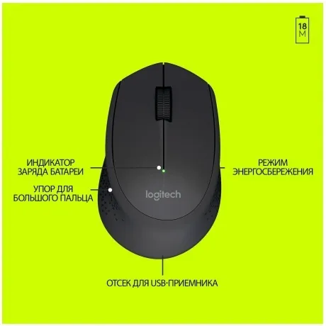 Мышь беспроводная Logitech M280 выделяется лаконичным дизайном, функциональностью и эргономичностью. Данная модель станет надежным решением для повседневной работы за компьютером. В ее основе содержится датчик с разрешением 1000 dpi, который обеспечивает быстрое и точное позиционирование курсора. Logitech M280 выполнена в корпусе с матовым покрытием и оснащена 3-мя кнопками. Манипулятор подключается по беспроводной технологии и функционирует в автономном режиме на основе батареек типоразмера АА (до 18 месяцев без замены элементов питания).