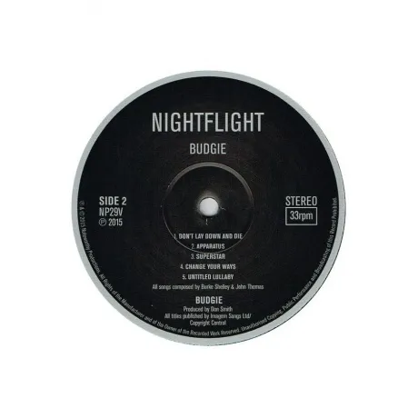 Девятый студийный альбом рок-группы Budgie Nightflight, вышедший в 1981 году. Британское переиздание 2015 года на 180-граммовом аудиофильском виниле. Budgie - валлийская рок-группа, основанная в 1967 году. Это одна из первых групп, начавших играть в стиле хэви-метал, поэтому коллектив оказал огромное влияние на последующее развитие тяжелого рока.