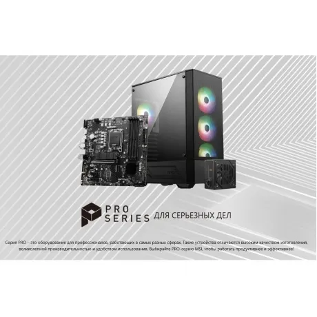 Материнская плата MSI PRO B760M-P рассчитана на сборку производительного универсального компьютера для дома или офиса. Системный блок может быть компактным: устройство соответствует форм-фактору Micro-ATX. Плата имеет форму квадрата со сторонами 244 мм. Стабильность функционирования системы помогает обеспечивать пассивное охлаждение чипсета и одного из слотов M.2. Материнская плата MSI PRO B760M-P совместима с процессорами Intel 12/13/14-го поколения с ядрами Alder Lake и Raptor Lake. Поддерживается память DDR5. Объем ОЗУ может достигать внушительных 192 ГБ. Память можно разгонять до 6800 МГц. Оба разъема M.2 подходят для размещения высокоскоростных SSD NVMe. В один из слотов M.2 можно установить SSD SATA. Крупные дисковые массивы из жестких дисков удобно организовывать благодаря 4 портам SATA. Плата поддерживает уровни RAID 0, 1, 5 и 10. Пара слотов PCI-E x1 может пригодиться для установки контроллеров и других плат расширения. Слот PCI-E x16 рассчитан на размещение производительного видеоадаптера или другого устройства PCI-E.