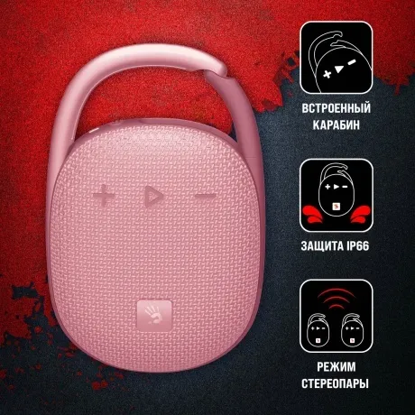 Портативная колонка Bloody S5 Lock представлена в розовом защищенном от брызг и дождя корпусе с нескользящими резиновыми накладками. Устройство размером со смартфон выдает мощность 5.5 Вт. Такой громкости хватает для создания фоновой музыки на расстоянии до 5 м. С помощью карабина вы можете крепить колонку к рюкзаку или части одежды во время прогулки или бега.