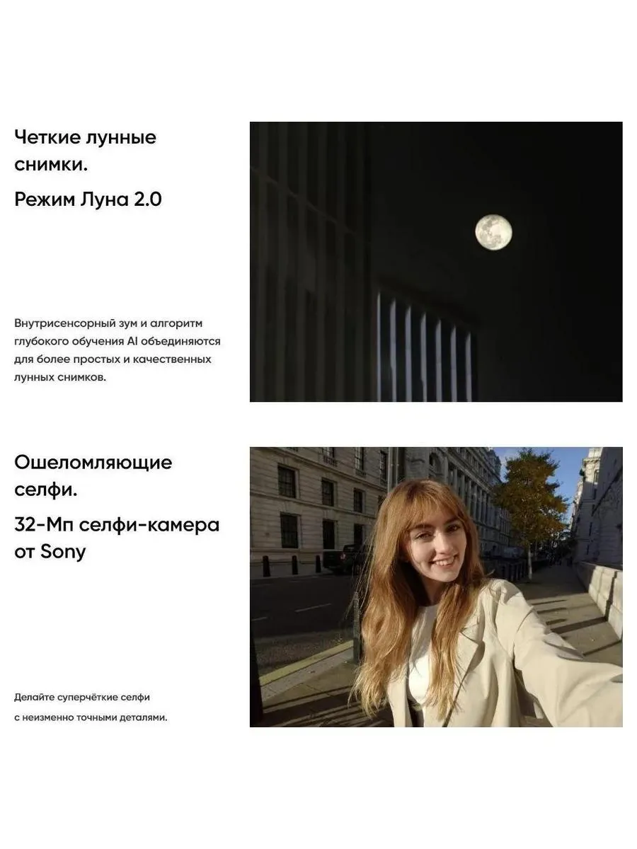 Смартфон realme 12 Pro+ 256 Гб представлен в устойчивом к пыли и влаге бежевом пластиковом корпусе с задней кожаной панелью. Изогнутый безрамочный экран 6.7” отображает более 1 млрд цветов. AMOLED-дисплей с частотой 120 Гц сохраняет точность цветопередачи, плавность видео и игровой графики. Процессор Snapdragon 7s Gen 2 с ОЗУ 8 Гб и системой теплоотвода устойчив к зависанию и перегреву. 256 Гб памяти хватает для установки приложений и хранения личных данных. Стереодинамики с технологией Dolby Atmos выдают чистый и громкий звук. 2 микрофона с шумоподавлением улучшают четкость телефонных разговоров и видеосъемки. realme 12 Pro+ оснащен тройной камерой 64+50+8 Мп с 3-кратным оптическим зумом, AI-распознаванием сцен, автонастройкой в зависимости от объекта съемки и освещения. Вы можете записывать 4K-видео, использовать кинематографический, замедленный и режим «Таймлапс». Фронтальная камера на 32 Мп делает четкие и красочные селфи.